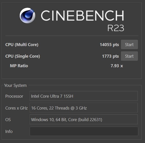 | Cinebench R23 Single Core | 1.773 Pkt. |