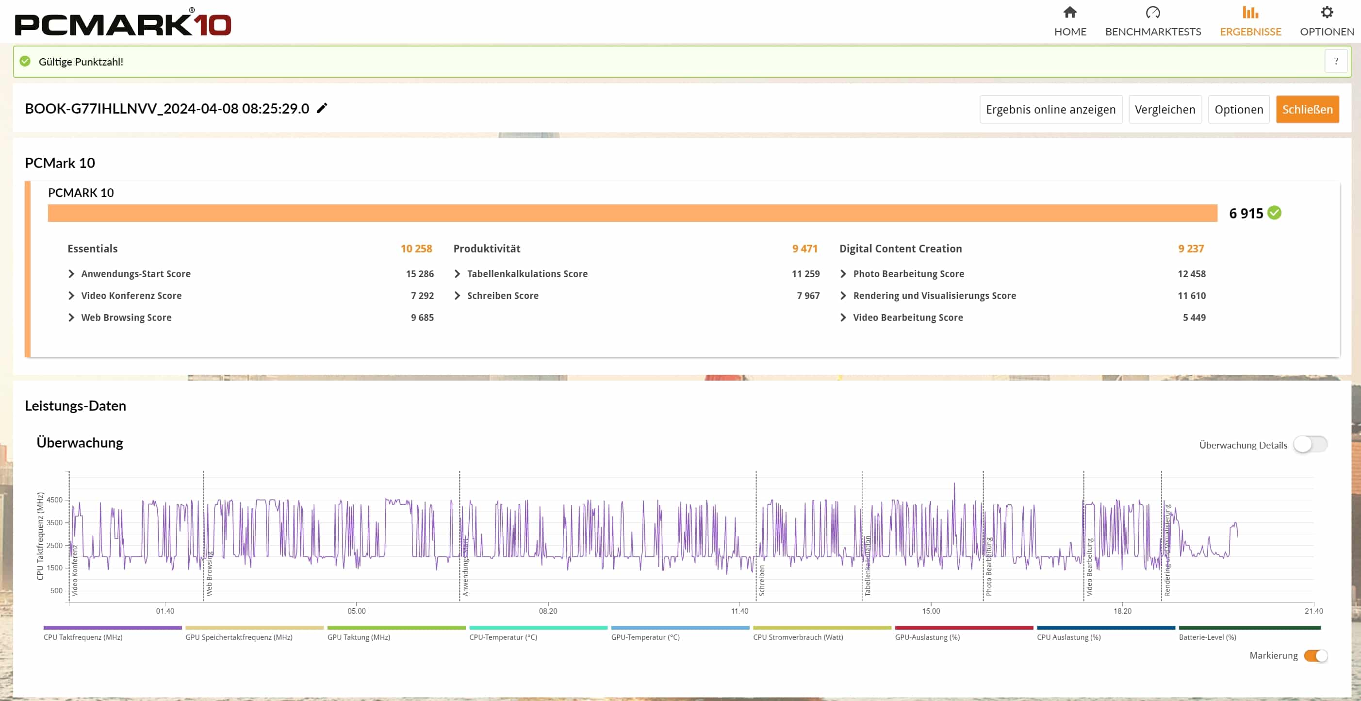 | PCMark 10 Gesamtwert | 6.915 Pkt. |