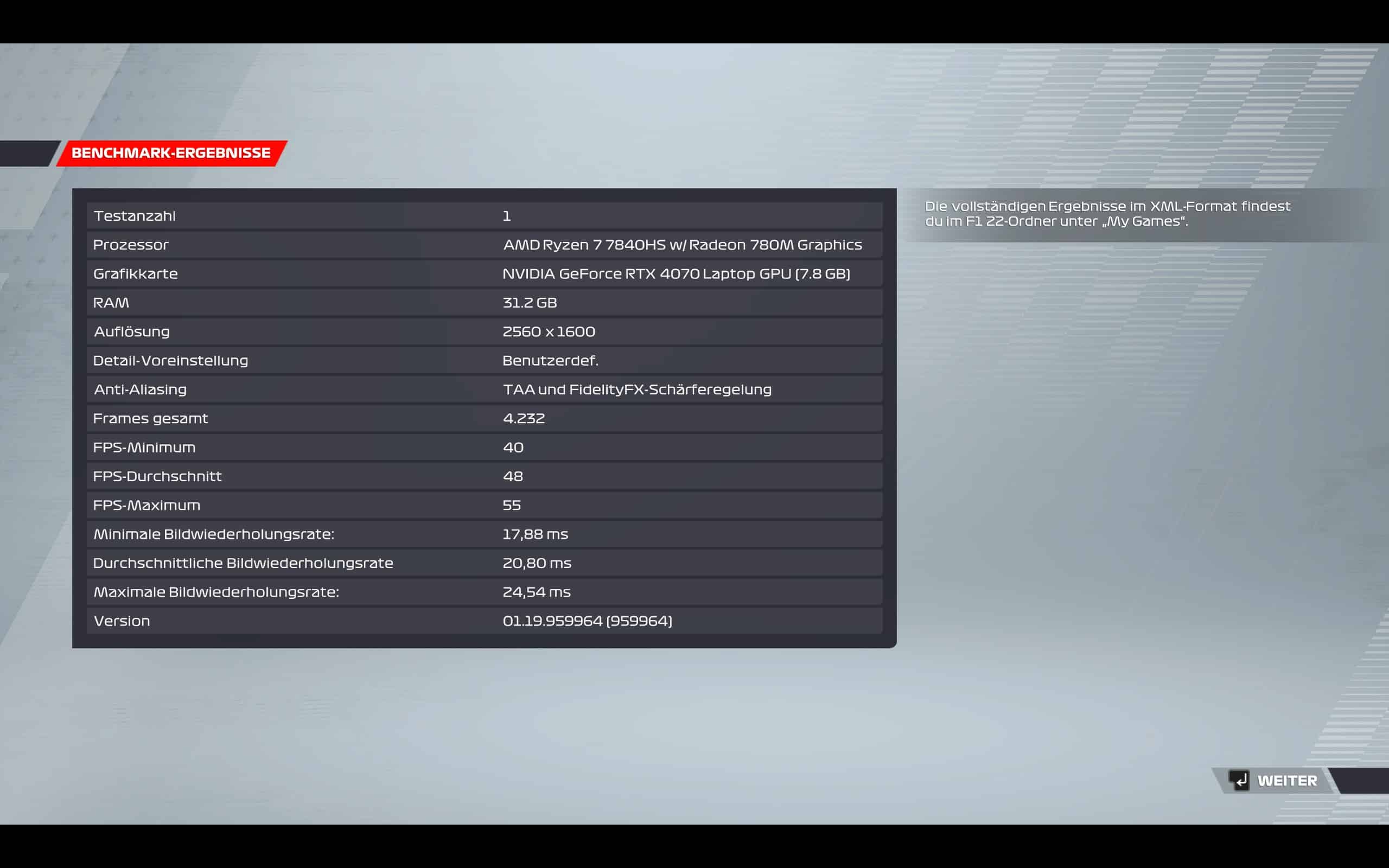 | F1 22 (Ultra, RT Hoch) – 1600p | 48 fps (Durchschnitt) |
