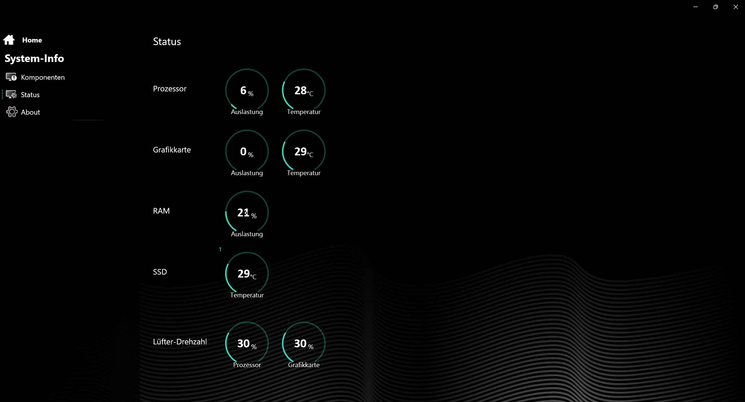 Zahlreiche Einstellungen erlaubt darüber hinaus die umfangreiche Control Center-App, die auf allen Geräten von Schenker vorinstalliert ist. Diese liefert beispielsweise Systeminformationen und überwacht Temperaturen und Auslastung der Hardware und ermöglicht eine Anpassung der Beleuchtung oder vieles mehr.