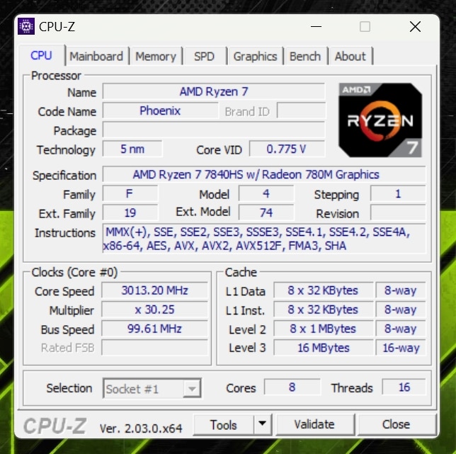 | Prozessor | AMD Ryzen 7 7840HS (8 Kerne, 16 Threads 3.8 – 5.1 GHz) |