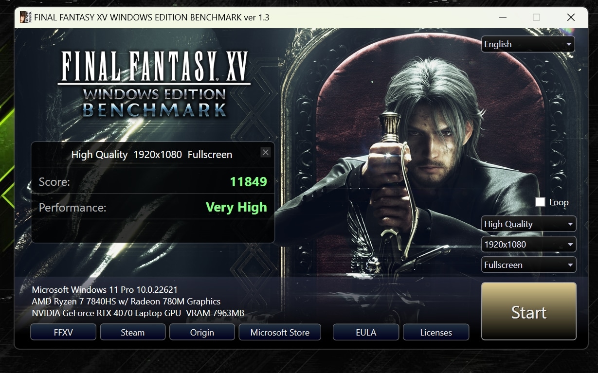 Bei der System- und Spielelleistung hat das gewählte Profil natürlich spürbare Auswirkungen auf die Performance, was anhand des folgenden Beispiels im Final Fantasy XV Benchmarks deutlich wird: