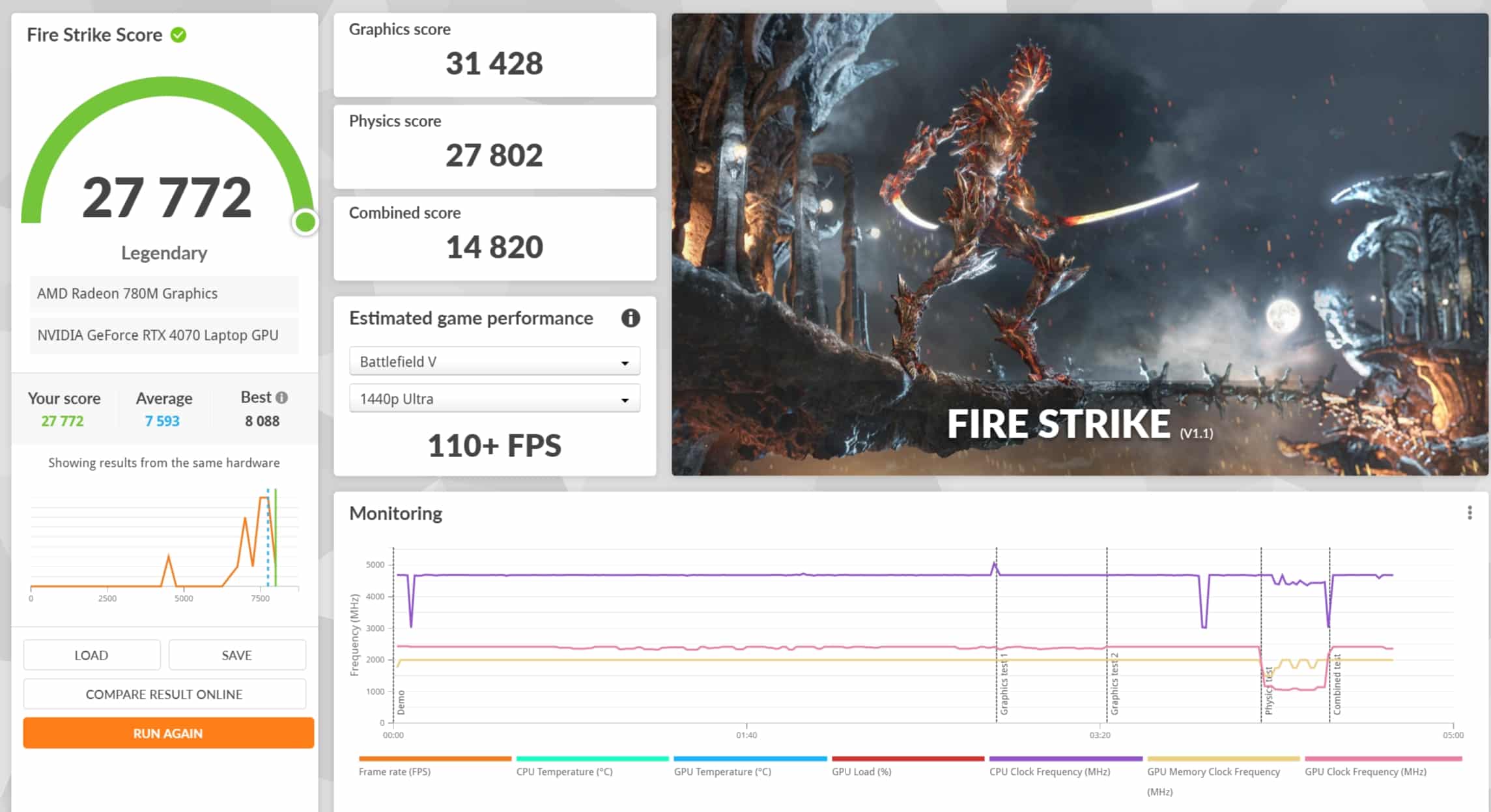 | Fire Strike Gesamt | 27.772 Pkt. |