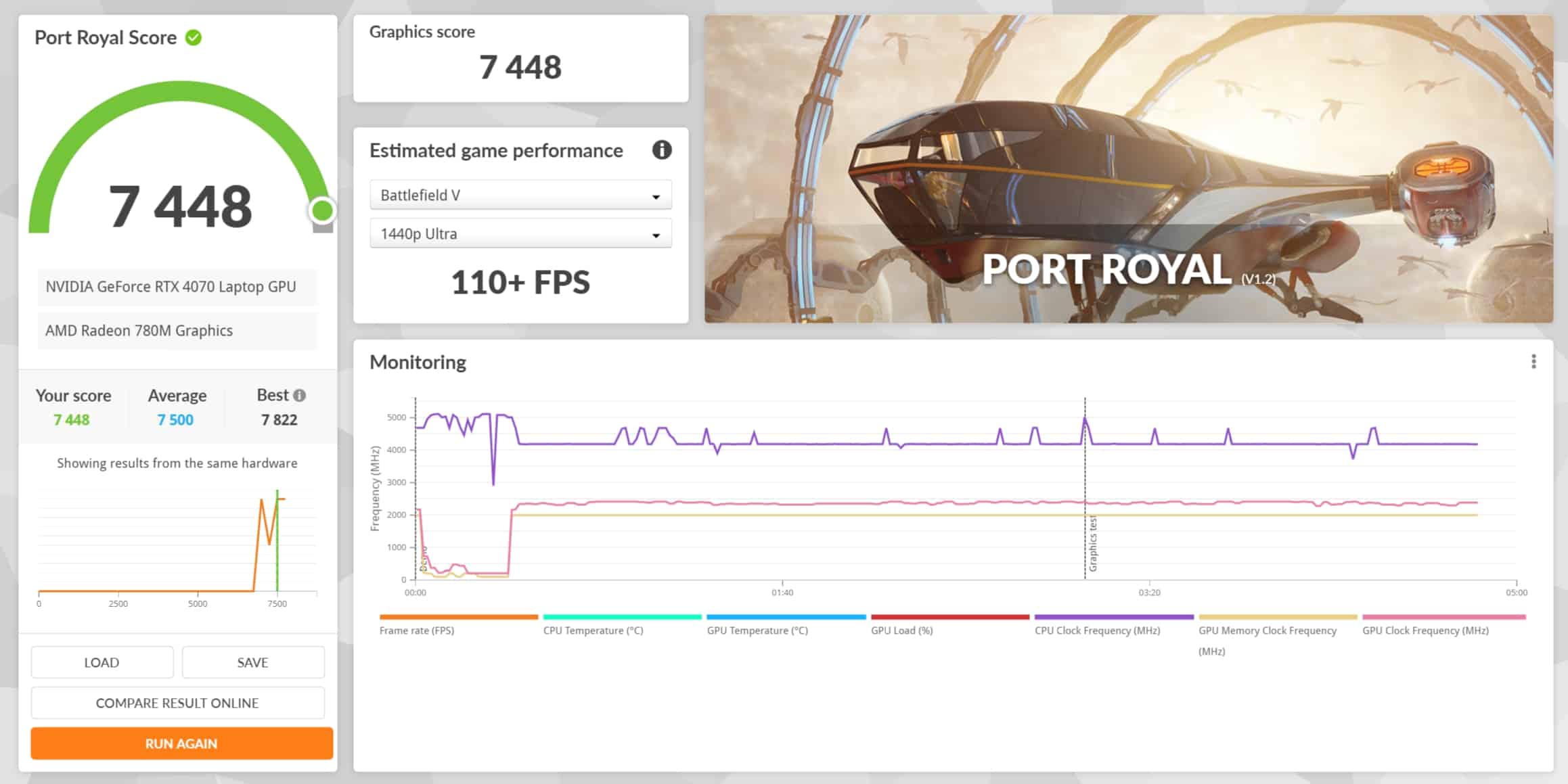 Das ist mehr als in allen RTX 4070-Gaming-Notebooks, die wir bisher testen konnten. Mit Ausnahme des Gigabyte AORUS 15X, das ebenfalls diese Leistung abrufen kann. Dennoch läuft das XMG-Notebook in nahezu allen Tests minimal vor dem Gigabyte-Modell ein, das aber wiederum nur mit 16 GB RAM bestückt ist.