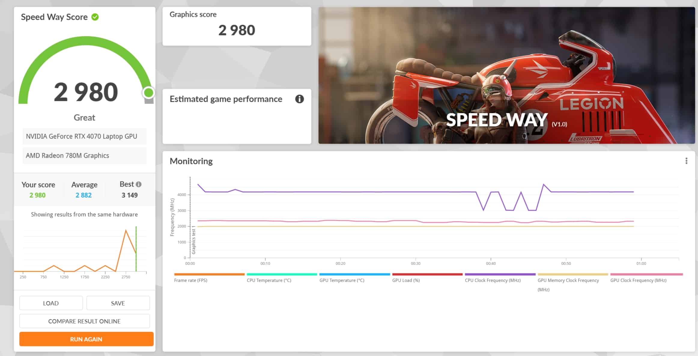 Auch den 3DMark Speed Way Stresstest durchläuft das Gaming-Notebook ohne Probleme und hält die Leistung auch nach 20 Durchläufen zu 99 Prozent aufrecht.
