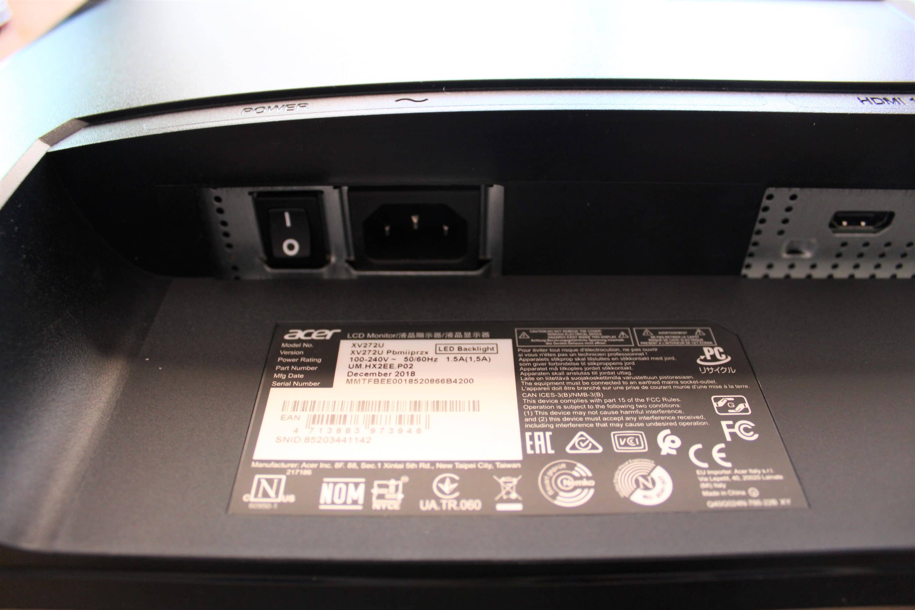 Die Bedienelemente des XV2 sind hinten zu finden. Daher wirkt der Monitor von vorne sehr aufgeräumt und schlicht. Auch hinten setzt such dieser Eindruck fort. Der Nitro XV2 verzichtet somit auf ein „Gaming-Design“ und spezielle RGB-Beleuchtungselemente.