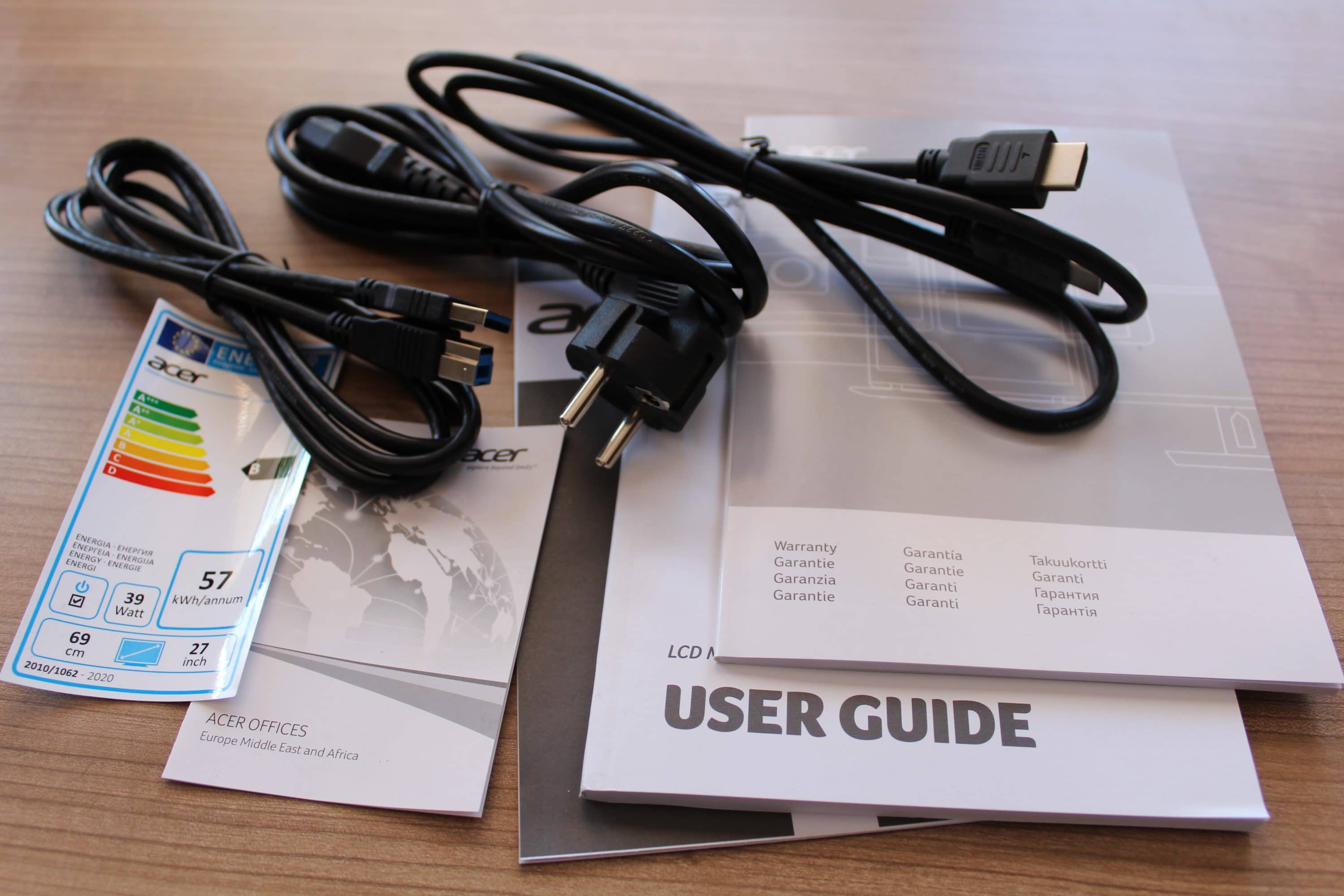 Der Monitor kommt gut verpackt in einer dicken Styropor-Hülle an. Zusätzlich sind ein verstellbarer Monitorständer, Strom- und USB-Kabel, HDMI-2.0b-Kabel und einige Begleithefte im Lieferumfang enthalten.