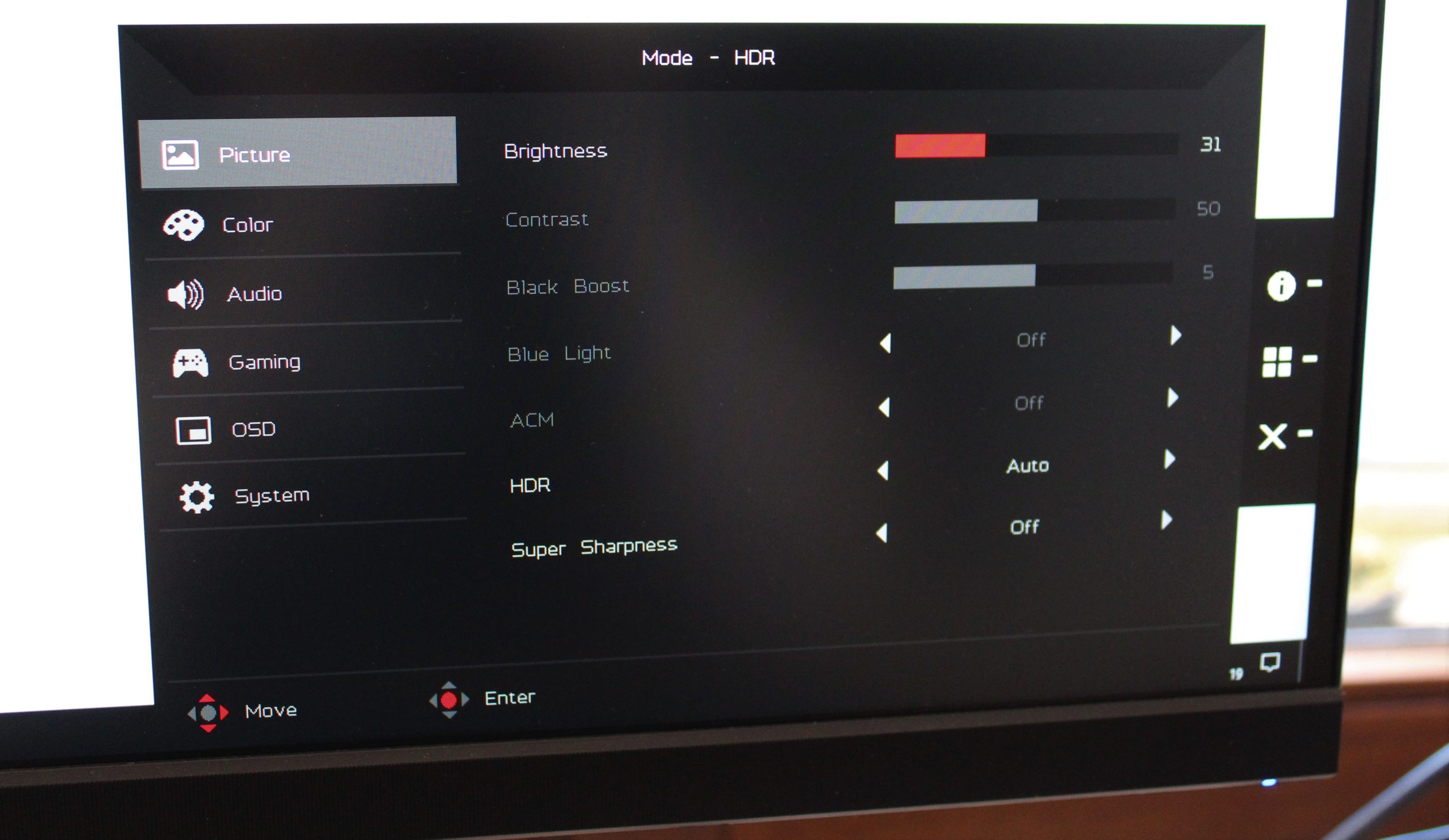 Die Bedienung des Nitro XV2 erfolgt über Knöpfe und einen Joystick, welche hinter dem Monitor platziert sind. Neben einem detaillierten Menü zur Einstellung verschiedener Parameter, besteht auch die Möglichkeit ein vordefiniertes und persönliches Profil auszuwählen. Die Menüführung ist logisch aufgebaut und verlief nach einer sehr kurzen Eingewöhnungsphase problemlos und schnell.