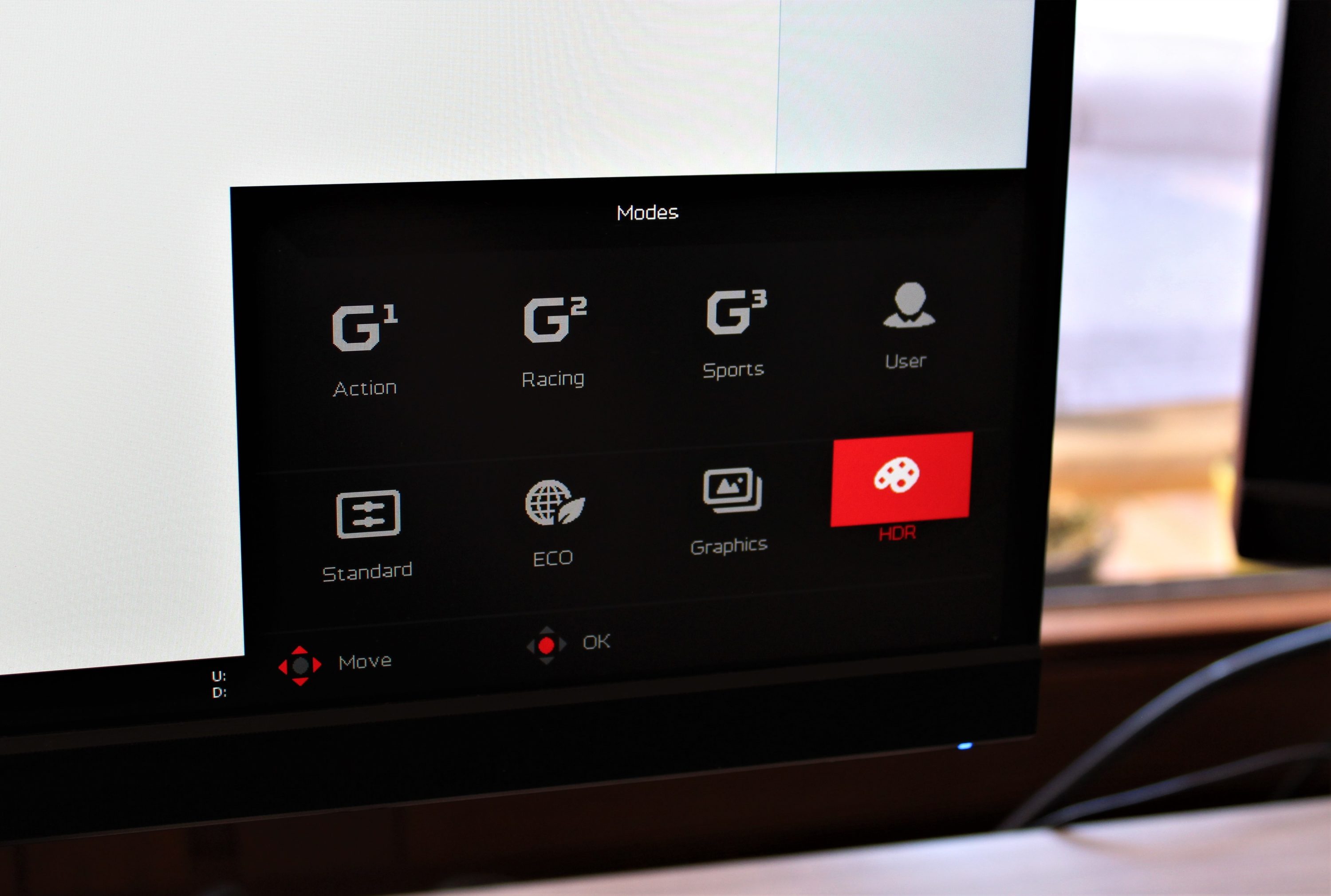 Der XV2 bietet einen HDR-Modus, welcher dem Standard DisplayHDR 400 gerecht werden soll. Es wurden einige HDR-Beispielfilme betrachtet und parallel mit dem Acer XF0 verglichen. Bei beiden Monitoren war die Helligkeit auf der maximalen Stufe und in Windows der HDR-Modus aktiviert. Im direkten Vergleich fällt direkt ein Unterschied auf: auf dem Nitro XV2 ist die höhere Maximalhelligkeit und dadurch eine lebhaftere Wiedergabe bemerkbar. Der XF0 wirkt daneben etwas blasser. Insgesamt sind wir mit der Wiedergabe von Filmen zufrieden, jedoch sollten hier bei der HDR-Wiedergabe aufgrund der maximal möglichen Helligkeit keine Wunder erwartet werden.