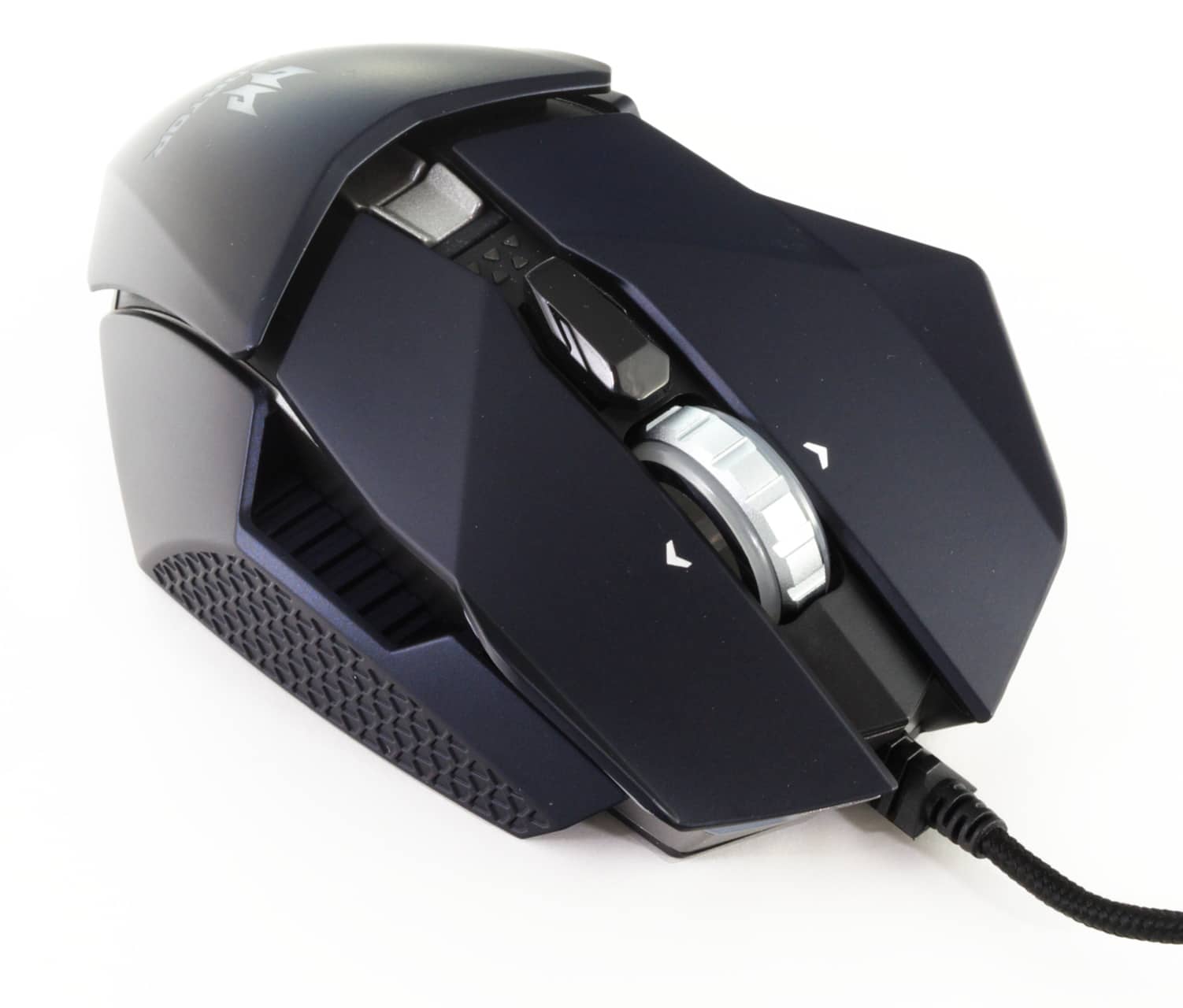 Abseits der beiden Daumentasten gibt es noch die übliche DPI-Taste am Mausrücken. Weitere Bedienelemente sind neben den beiden Haupttasten und dem Mausrad nicht verbaut. Bei letzterem handelt es sich aber um ein 4-Wege-Mausrad, das also nach links und rechts gedrückt werden kann. Damit erhält man zwei zusätzliche Tasten, die man mit Funktionen belegen kann.