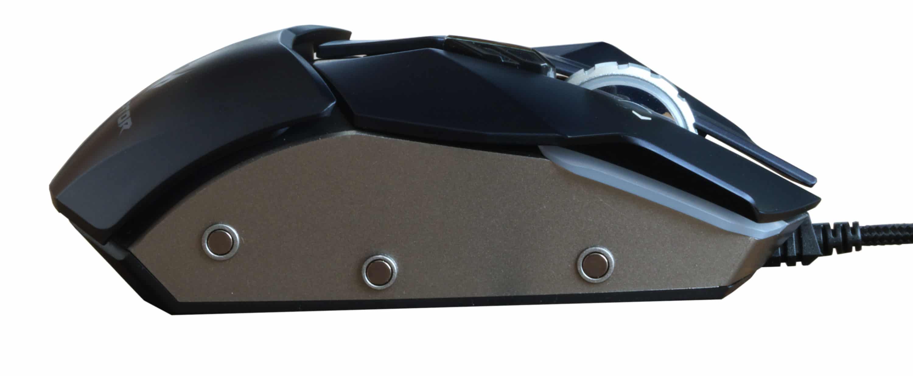 Wie im Preisbereich üblich verfügt die Maus über einige austauschbare Elemente und eine RGB-Beleuchtung. Besonders sind die verbauten Omron-Switches: Unter jeder der Maustasten sind zwei unterschiedliche Taster verbaut, die auf 20 beziehungsweise 50 Millionen Klicks spezifiziert sind. Diese haben einen unterschiedlichen Druckpunkt, für jede Maustaste kann der zu nutzende Switch individuell ausgewählt werden.