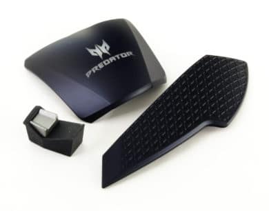 Acers neue Maus richtet sich klar an Rechtshänder, das wird anhand des Layouts klar ersichtlich: Der Rücken und die rechte Fingerauflage lassen sich austauschen, die Daumenauflage ist hingegen fest verbaut und nicht für Linkshänder geeignet. Zudem befinden sich auf der linken Seite des Geräts zwei der Zusatztasten, die sich nur mit dem Daumen sinnvoll bedienen lassen.