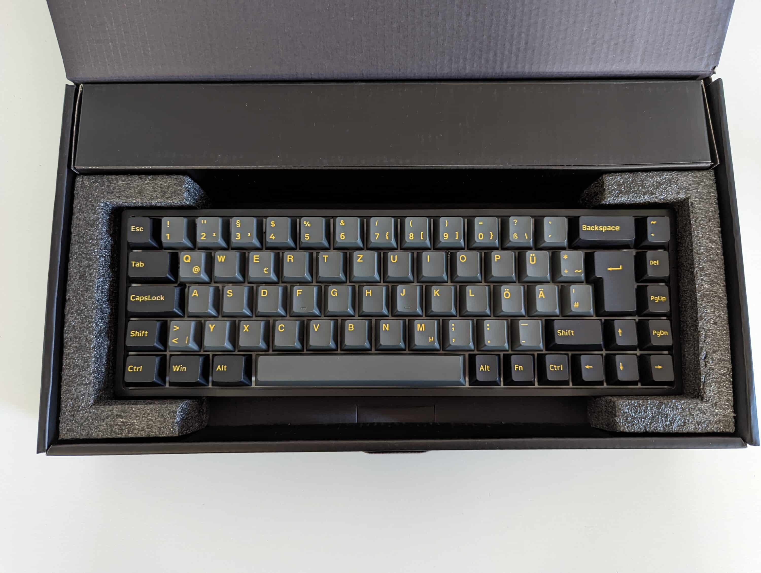 Die Black & Gold 3068B ist eine Tastatur im 65 % Layout. Dieses Layout ist das kleinste Layout, das noch Pfeiltasten besitzt. Ansonsten fehlt hier ein Numpad, sowie die F-Reihe (F1-F12). Je nach persönlicher Präferenz ist eine kleine Tastatur wie die 3068B Plus im 65 %-Format entweder ein Upgrade im Vergleich zu einer Tastatur im Vollformat – ganz nach dem Motto weniger ist mehr – oder ein Ausschlusskriterium.