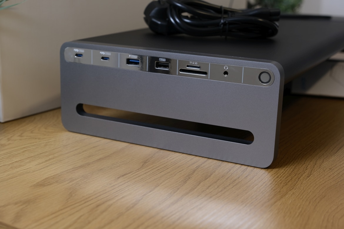 Das Anker 675 vereint eine USB-C-Dockingstation samt vieler Anschlu00fcsse mit einem praktischen Monitorstu00e4nder und sorgt so fu00fcr einen aufgeru00e4umten Schreibtisch. Teuer, aber u00fcberzeugend.