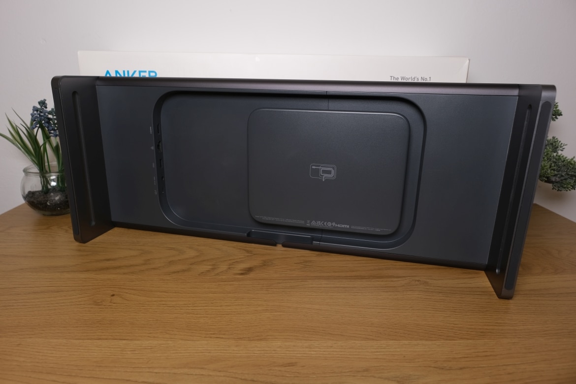 Die Anker 675 Dockingstation wird via USB-C-Kabel mit dem Notebook oder PC verbunden. Hier kommt der Upstream-Anschluss and der Unterseite des Docks zum Einsatz, der gleichzeitig ein Aufladen des Notebooks mit bis zu 100 Watt ermöglicht.