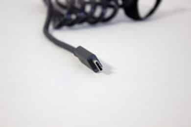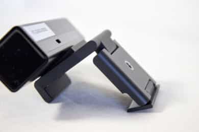 Auf der Vorderseite finden wir neben der Linse noch die beiden Mikrofone und eine Status-LED. Diese leuchtet sobald die Webcam verwendet wird. Auf der Rückseite ist ausschließlich der USB-C-Anschluss zu finden.