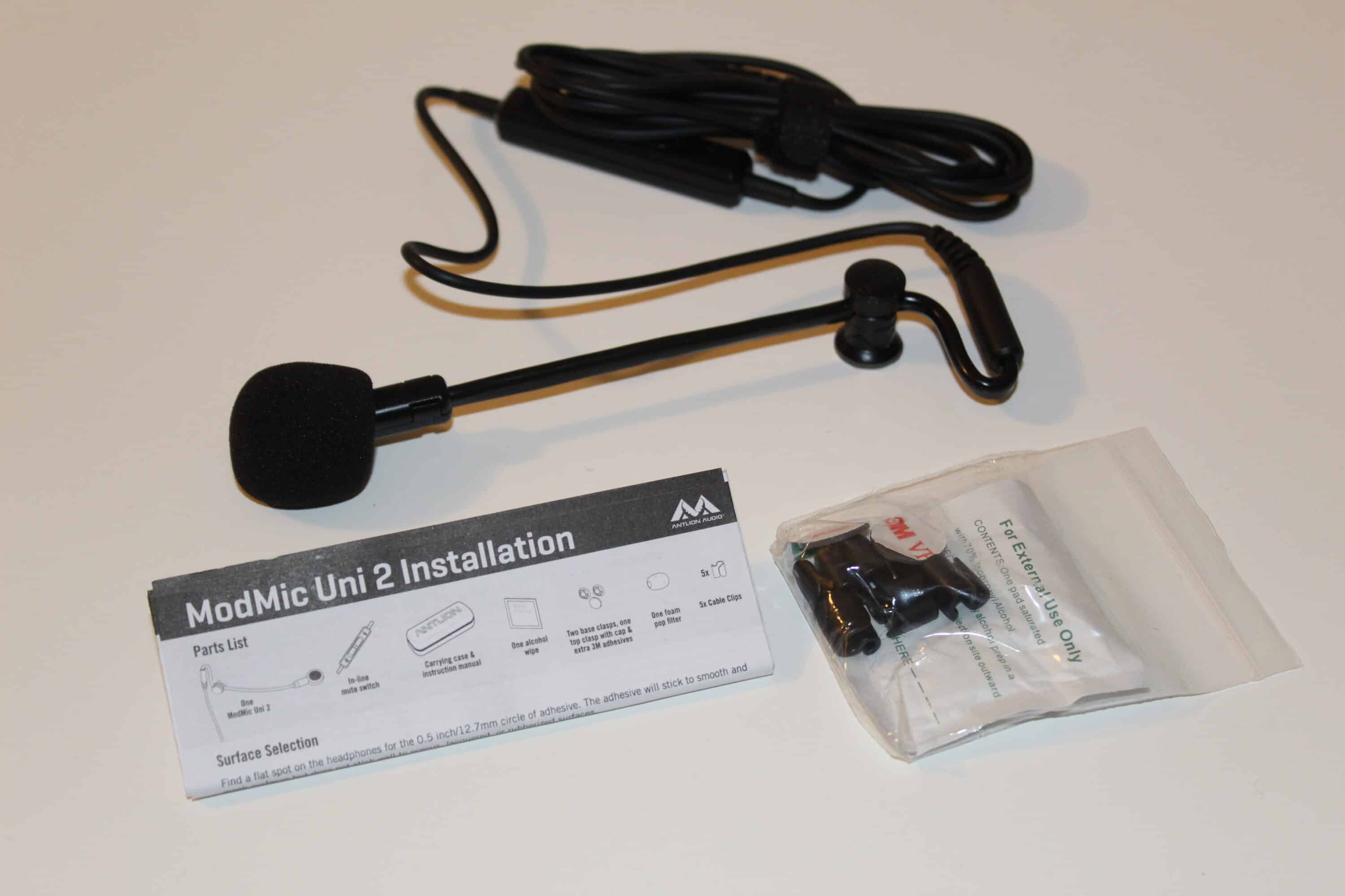 Das ModMic Uni 2 kommt in einem schlichten Karton, der das Produkt simpel erklärt und darstellt. Öffnet man diesen, so findet man Einiges an Zubehör: