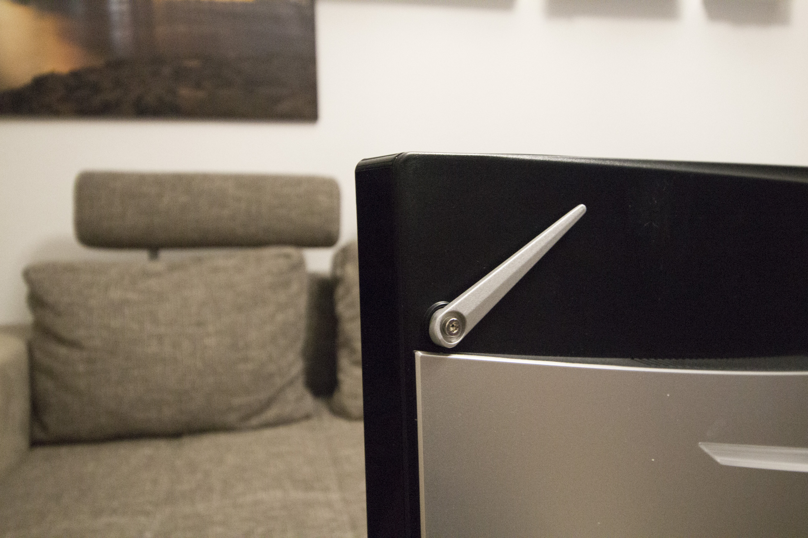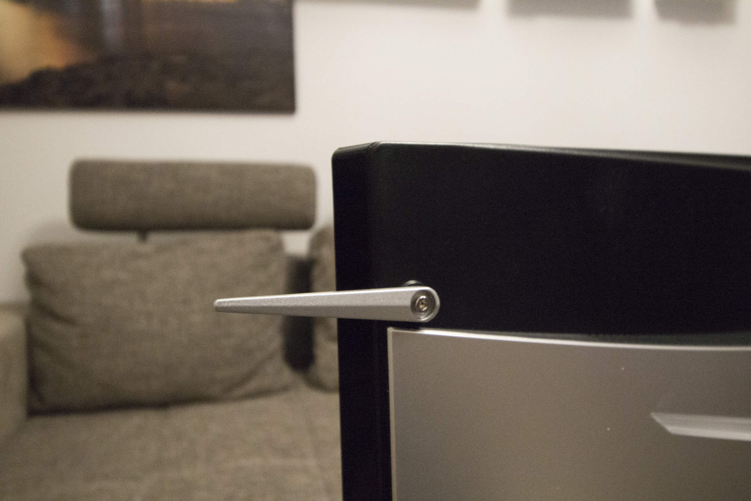 Einstellungen werden in einem recht umfangreichen Menü vorgenommen, das über ein Steuerungskreuz, das sich unter dem Bildschirm befindet, aufgerufen und bedient werden kann. Darüber hinaus steht auch eine kabelgebundene Fernbedienung zur Verfügung. Der Bildschirm ist mit einem Gewicht von zwölf Kilogramm außergewöhnlich schwer. Aufgrund seines Formates braucht er das Gewicht jedoch auch zur Stabilität.