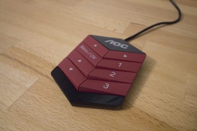 Neben dem bereits erwähnten DisplayPort-Anschluss, der für den bestmöglichen Einsatz der FreeSync-Technologie genutzt werden muss, bietet AOC den Nutzern einen HDMI-, einen VGA- und einen DVI-Anschluss. Darüber hinaus stehen zwei 3,5-mm-Buchsen und zwei USB-3.0-Anschlüsse, von denen einer USB-Quick-Charge unterstützt, zur Verfügung.