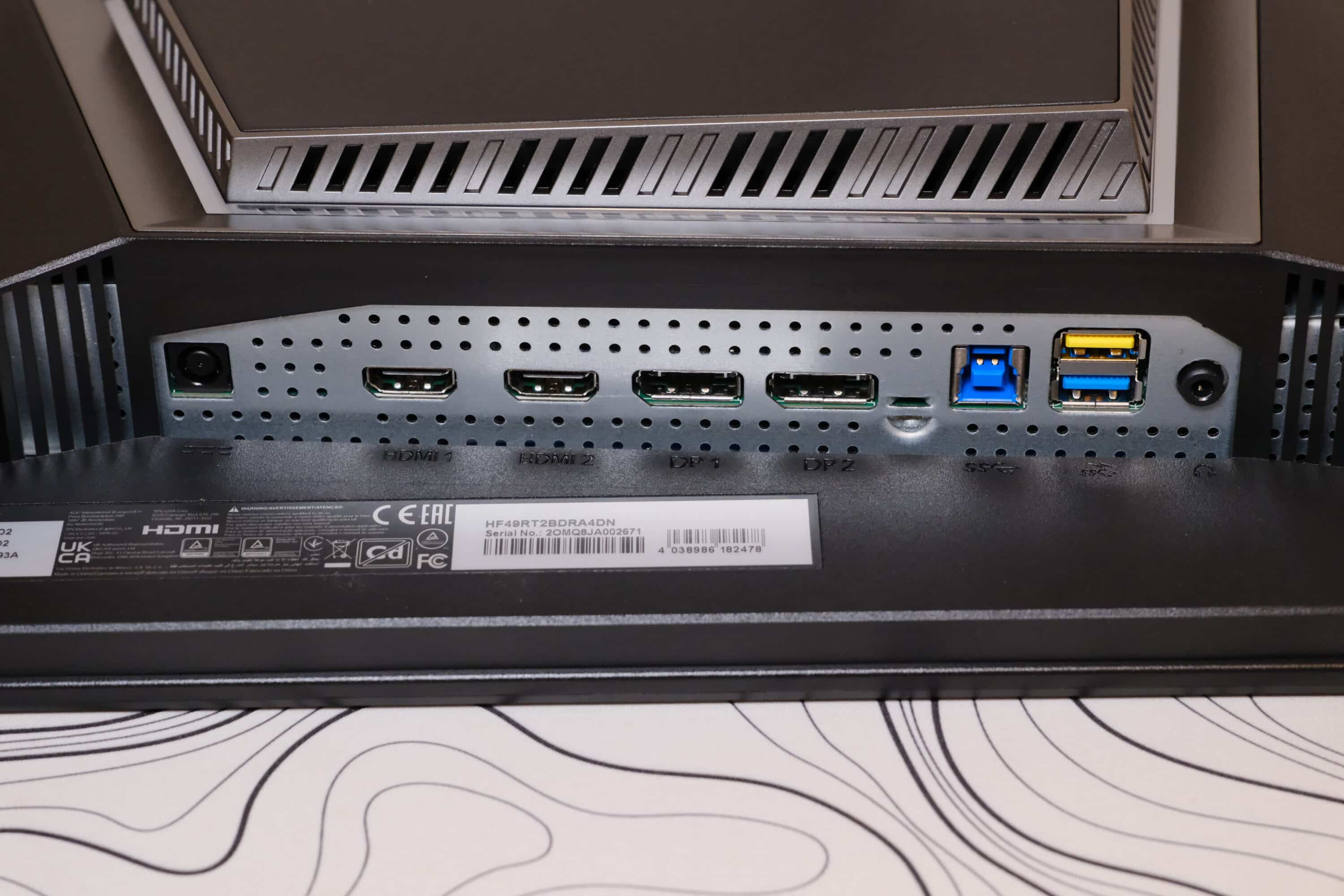 Die Anschlüsse des AOC Agon PRO AG276QZD2 finden sich an der Unterseite des Monitors, wo sie leicht zugänglich erreichbar sind. Wie immer ist ein An- und umstecken besonders mit der Pivot-Funktion am schnellsten zu realisieren.