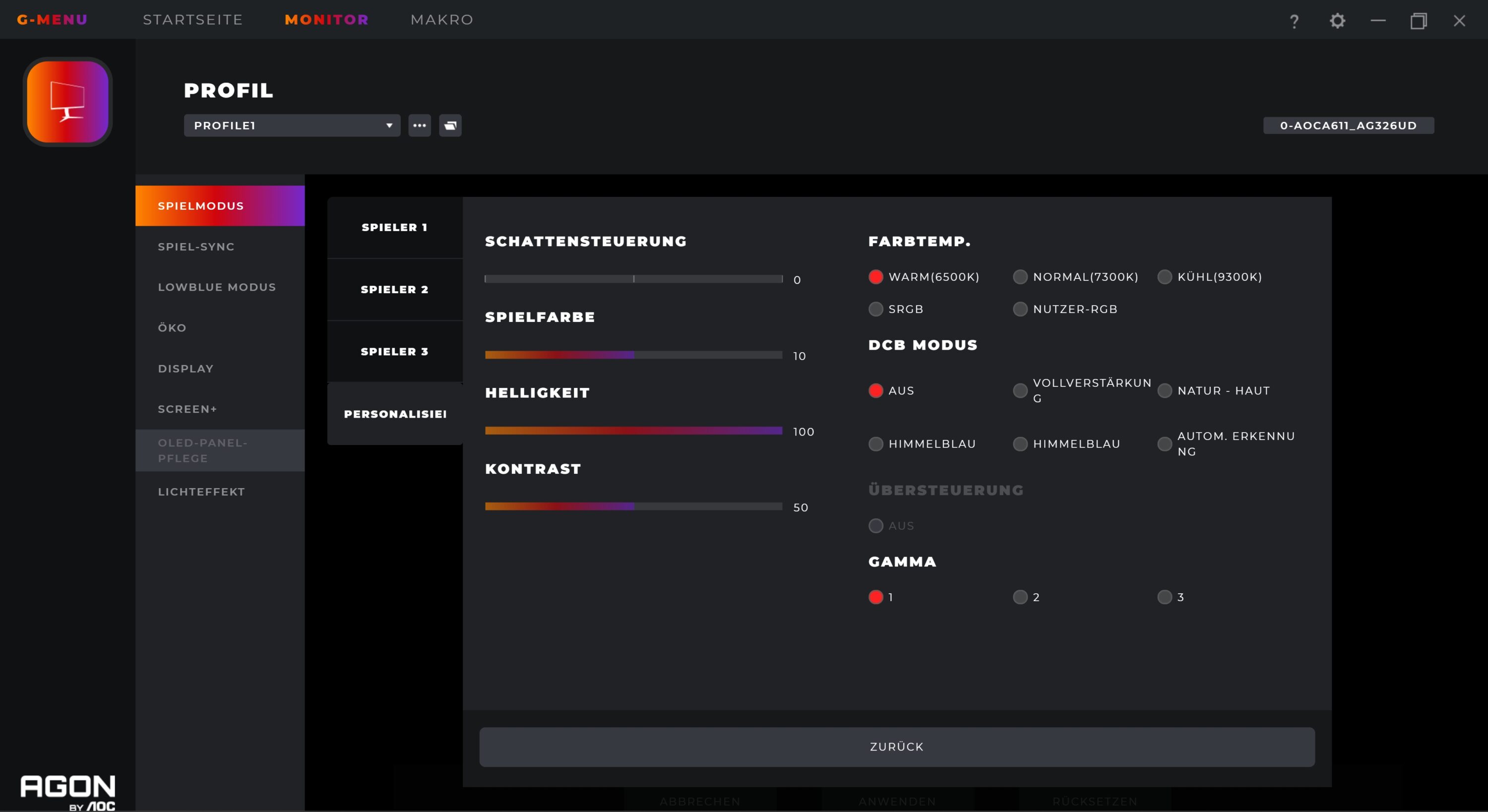 Innerhalb der Software kannst du nämlich sämtliche Monitoreinstellungen vornehmen. Das Interface ist dabei schön übersichtlich gestaltet und erlaubt eine Anpassung ohne Fummelei an der Rückseite.