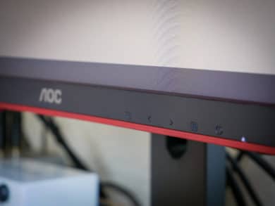 Das Menü des AOC Gaming-Monitors lässt sich über die Knöpfe an dessen Unterseite bedienen. Dies ist leider etwas unübersichtlich, mit etwas Eingewöhnung aber gut zu steuern. Wer vorher schon einen Monitor von AOC besessen hat, der wird mit dem Menü keine Probleme haben, da diese sich alle stark ähneln. Alle Anschlüsse sind, wie bei den meisten Monitoren, auf der Rückseite von unten zu erreichen.