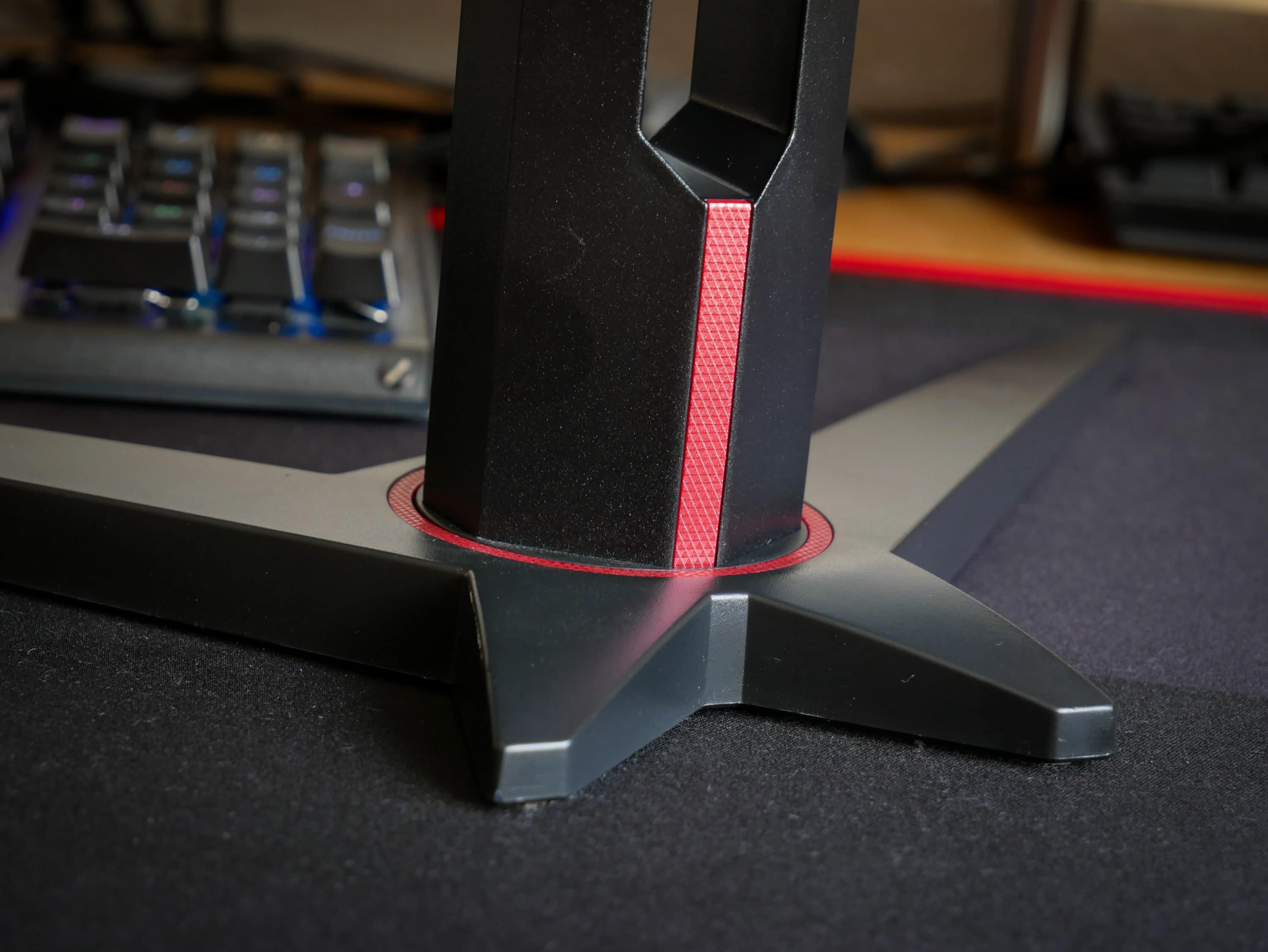 Das Design des schwarz-roten AOC C27G1 ist auffallend stylisch. Er zeigt sich mit seinem scharfkantigen Gehäuse und dem gespreizten Standfuß im Gewand moderner High-End-Gaming-Monitore. Die rot abgesetzten Designelementen an der Rückseite und am Fuß runden das Gesamtbild des Bildschirms ab und zeigen auf den ersten Blick was im Inneren steckt. Durch seine besonders dünnen Ränder, man könnte fast schon von einem rahmenlosen Design sprechen, lässt sich auch ein perfektes Multi-Monitor-Setup realisieren.