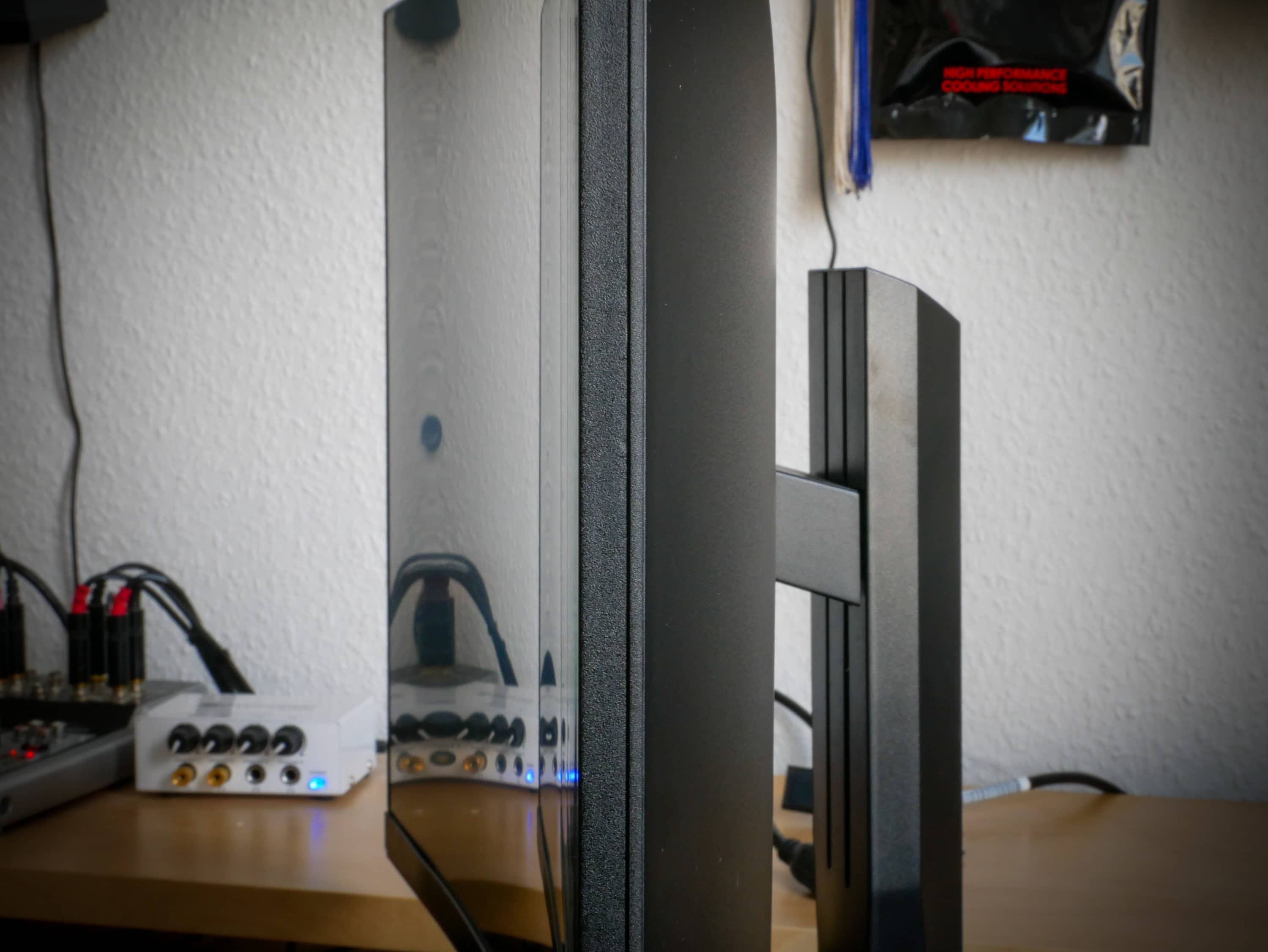 Der AOC C27G1 lässt sich um 130 mm in der Höhe und die Neigung zwischen -4° bis 21,5° einstellen. Leider ist es nicht möglich den Monitor nach links oder rechts zu schwenken. Eine Pivot-Funktion gibt es, wie für Curved-Displays allerdings üblich, auch nicht. Wer auf den Standfuß verzichten möchte kann sein Setup auch mit dem 100 x 100 VESA-Mount montieren.