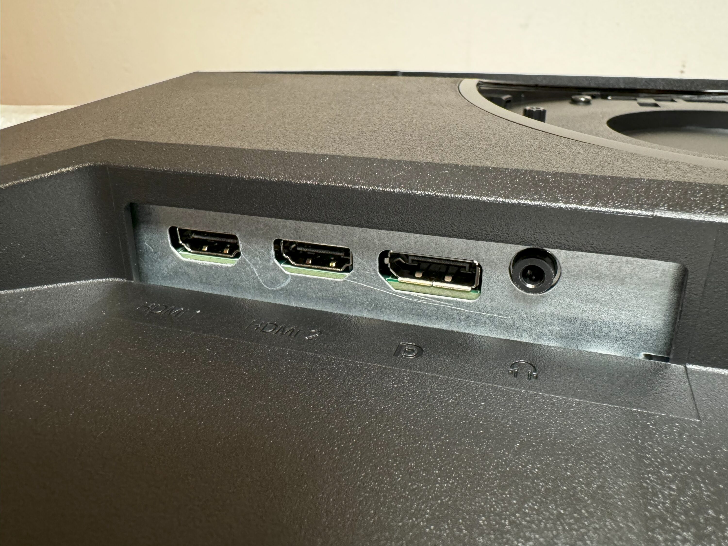 Hinsichtlich der Anschlüsse gibt sich der AOC Gaming 24G4X etwas geizig. Zweimal HDMI 2.0 und ein DisplayPort 1.4-Anschluss stehen zur Wahl, außerdem gibt es einen 3,5-mm-Klinkenanschluss. Das war’s dann auch schon, denn auf einen USB-Hub verzichtet der Monitor.
