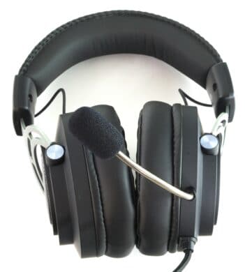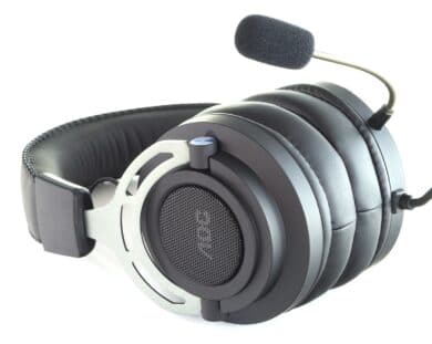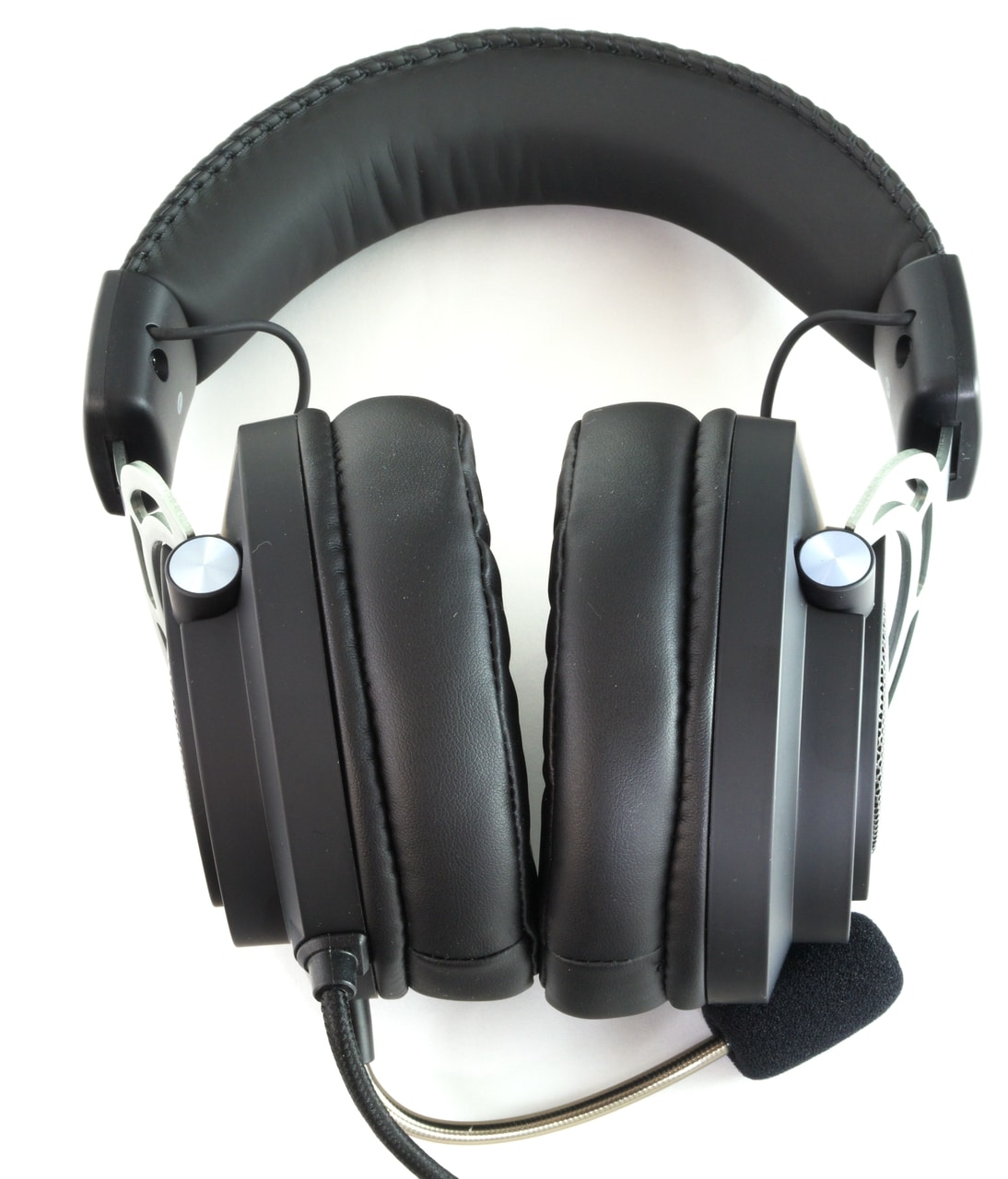 Ersteres ist, wie üblich, auf der Außenseite der Ohrmuscheln untergebracht, doch befindet sich darüber interessanterweise ein Metallgitter. Das Mikrofon wiederum ist abschraubbar, wobei der eigentliche Anschluss ans Headset von einer Steckhülse überdeckt wird. Zudem ist auch der flexible Mikrofonarm auffällig, der silbern gehalten und durch durchsichtigen Kunststoff ummantelt ist.