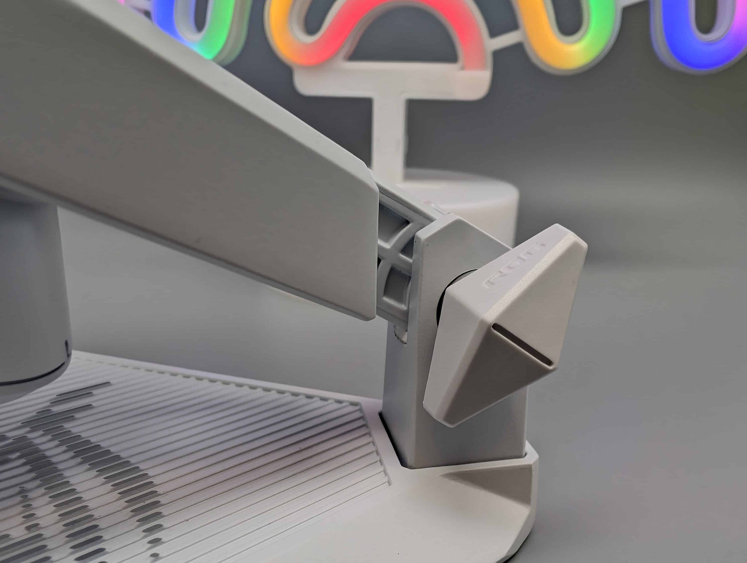 Während das ASUS ROG Carnyx in der schwarzen Farbvariante recht einheitlich gehalten ist, gefällt mir das weiße Modell etwas besser. Denn hier sorgen zusätzliche graue oder silberne Designelemente für gelungene Farbakzente.