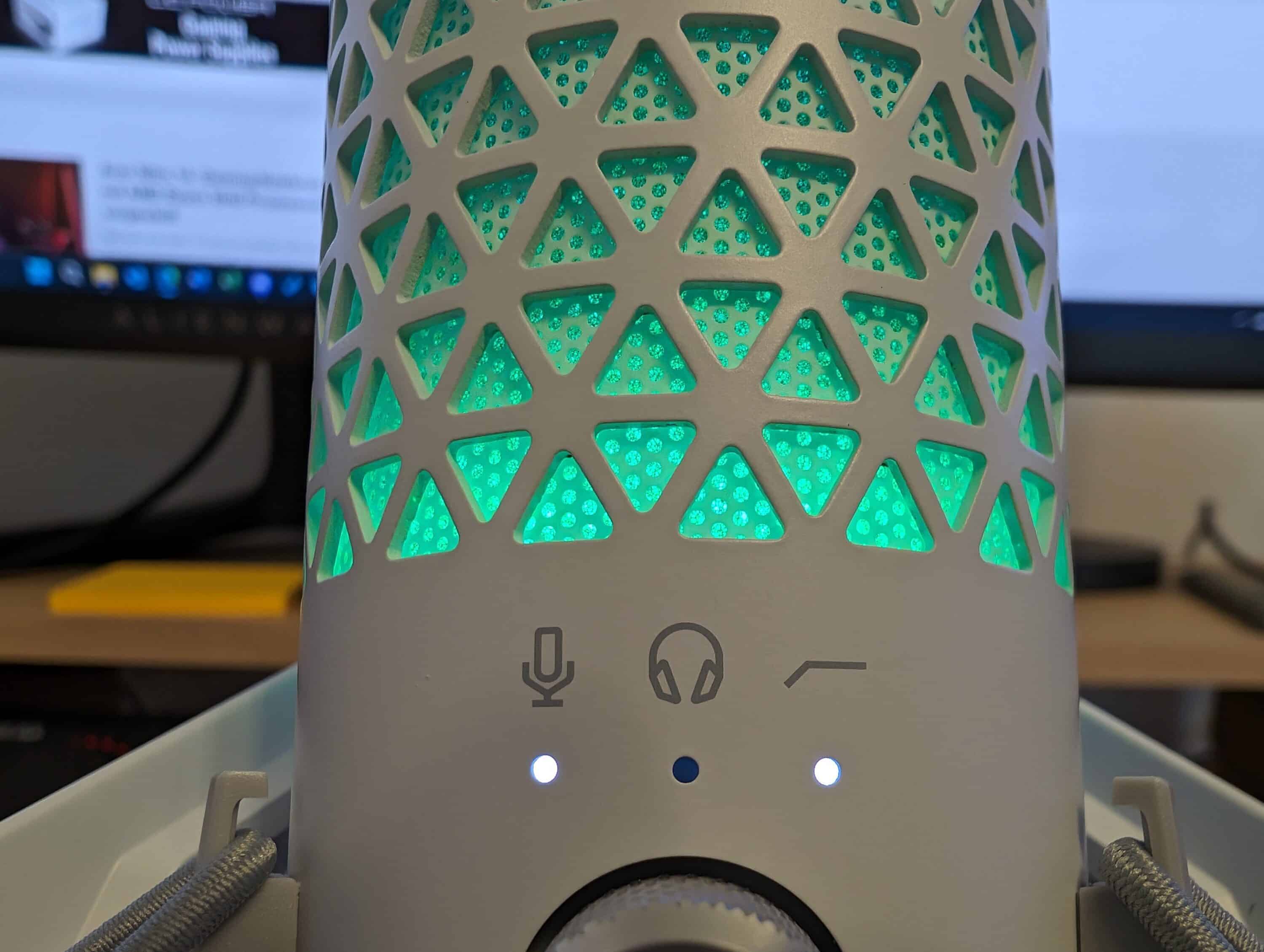 Praktisch ist zudem, dass die Beleuchtung bei Aktivierung der Stummschalt-Taste an der Oberseite auf eine rote Farbe umspringt. So sieht man sofort, wenn man vergeblich in das Mikro quatscht, aber durch die Stummschaltung kein Ton aufgezeichnet wird.