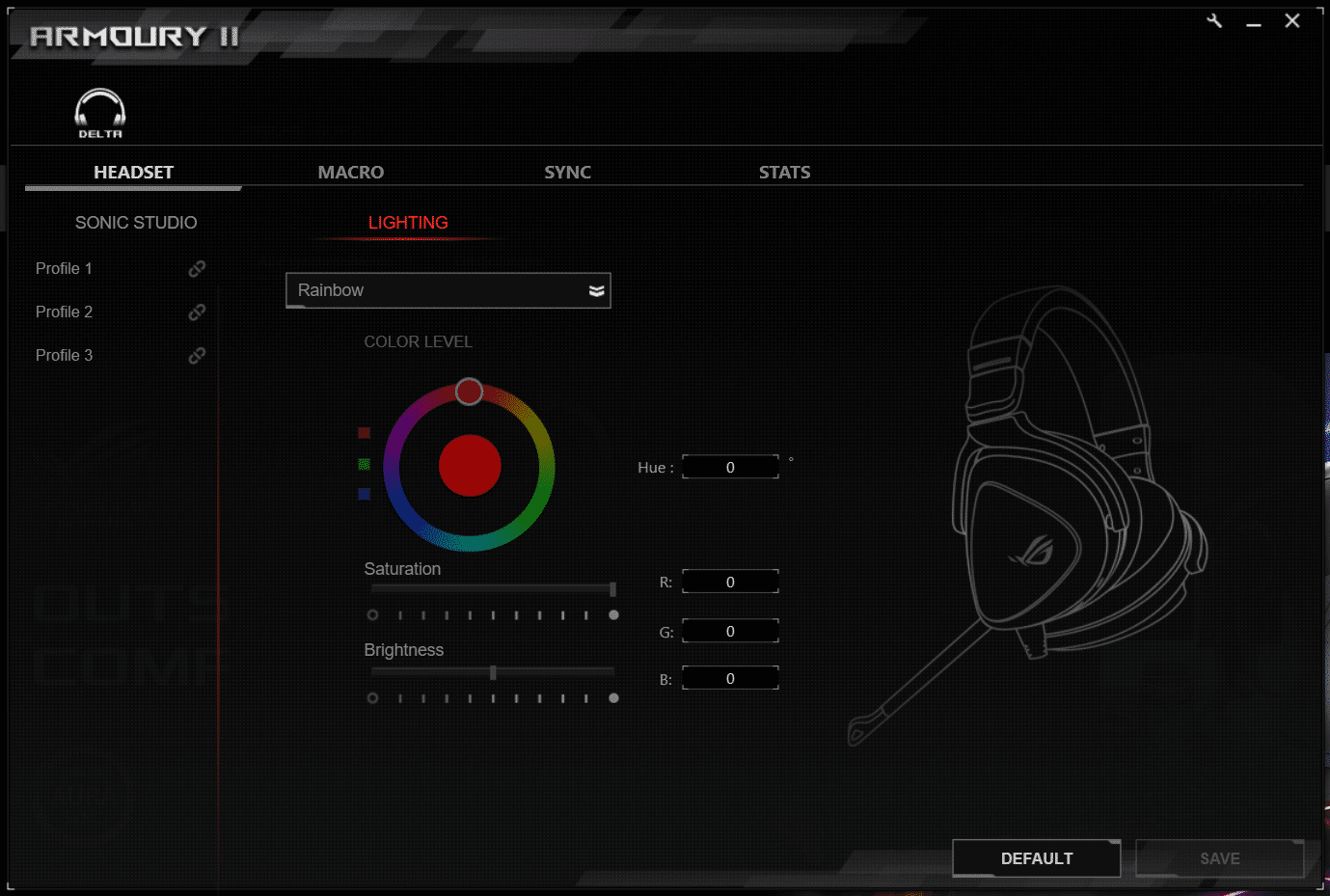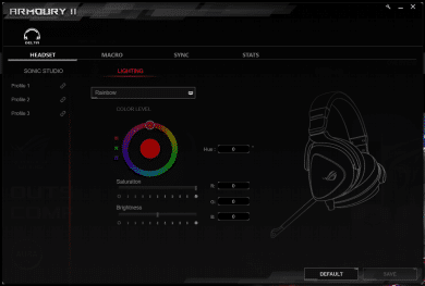 Die Bedienung ist indes recht simpel. An der linken Ohrmuschel finden sich ein Lautstärkeregler sowie ein Schalter für die Beleuchtung. Der Lautstärkeregler lässt sich auch drücken – dann wird das Mikrofon stumm geschaltet. Zusätzliche Software wird also nicht zwingend benötigt. Soll die Beleuchtung jedoch individualisiert werden, muss auf sie zurückgegriffen werden. In der ROG-Armoury-2-Software kann dann ohne größere Schwierigkeiten zwischen mehreren Beleuchtungsmodi gewählt werden.