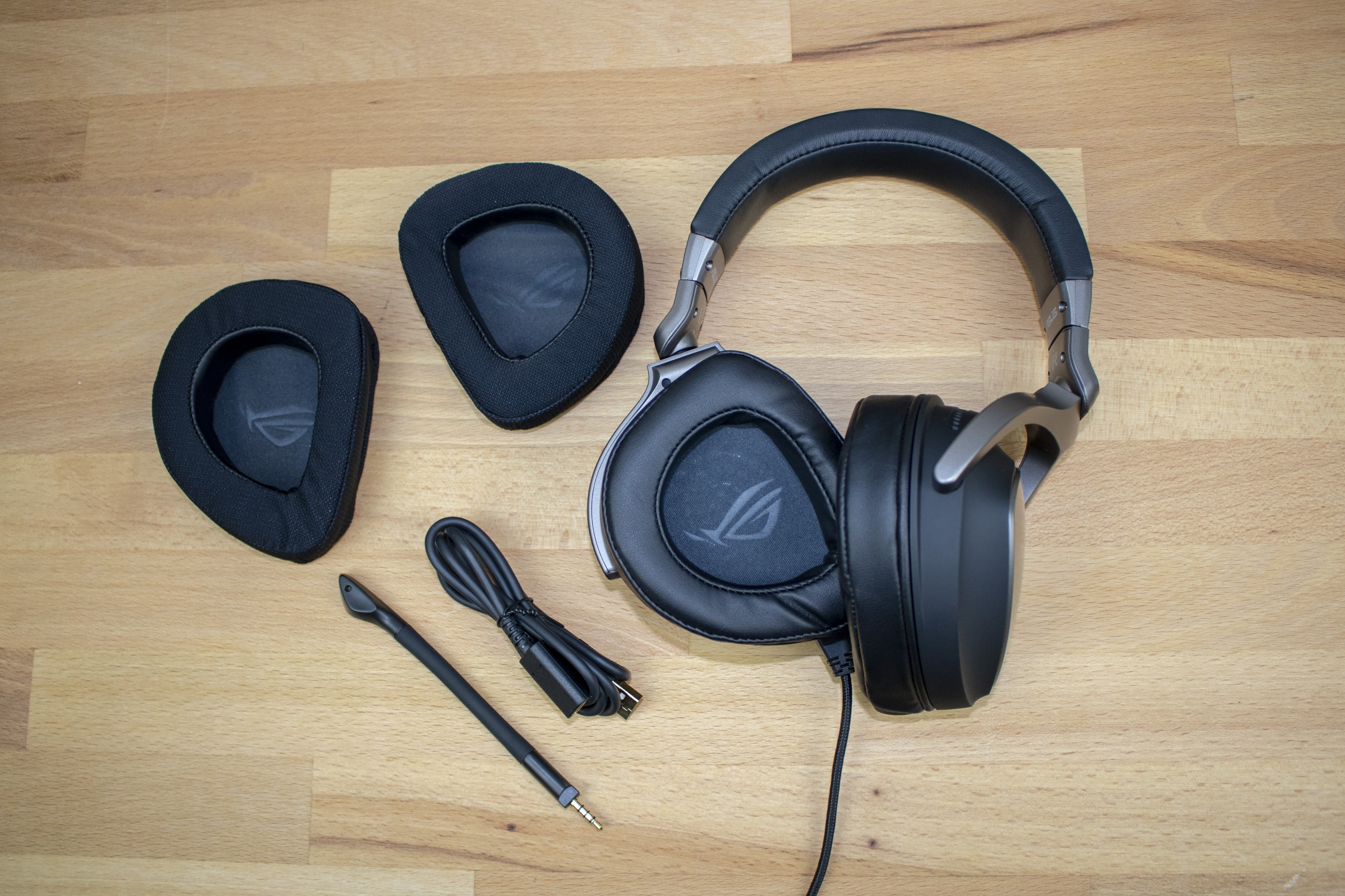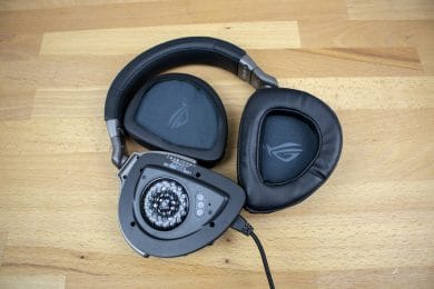 Wie bereits erwähnt kann aus zwei Bezügen gewählt werden. In beiden Fällen fügen die Ohrmuscheln sich mit angenehmem Druck an die Ohren des Trägers an. ASUS legt anscheinend großen Wert darauf, die Kopfhörer auch für längere Spielsessions geeignet zu machen. In unserem Test saßen die Kopfhörer zu jeder Zeit angenehm und verursachten keinerlei Schmerzen – auch nach mehreren Stunden des Tragens. Der Anpressdruck ist recht ausgewogen, sodass das Headset auch für Brillenträger geeignet ist.