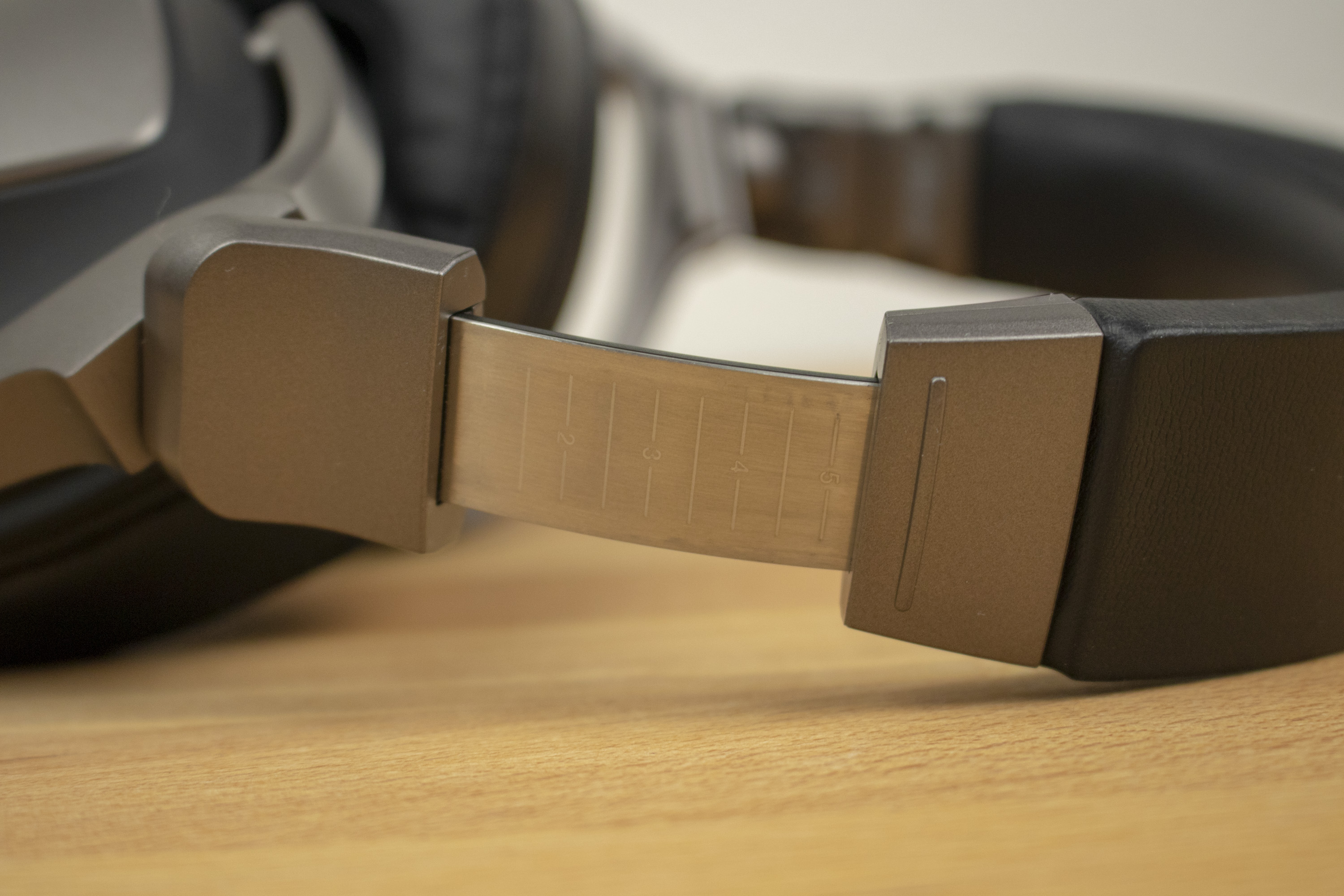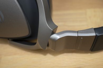 Der Bügel, welcher die beiden Ohrmuscheln verbindet, ist verstellbar, wodurch das Headset gut an unterschiedliche Kopfformen der Träger angepasst werden kann. Auf jeder Seite kann das Headset um 4 Zentimeter verstellt werden. Die Rasterung ist präzise und knackig – versehentliches verrutschen ist nahezu ausgeschlossen. Hilfreich sind außerdem die Drehgelenke, die sich um etwa 30 Grad nach vorne und 90 Grad nach hinten rotieren lassen. Zusätzlich können die Ohrmuscheln noch um etwa 30 Grad nach oben oder unten gekippt werden. Im Test war es nicht schwer, eine geeignete Einstellung für den idealen Tragekomfort zu finden.