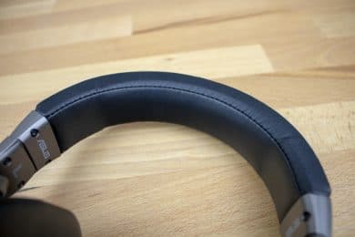Verarbeitet ist das größtenteils aus hartem Kunststoff gefertigte Gerät indes vergleichsweise gut. Die gesamte Konstruktion wirkt robust. Der breite Kopfbügel ist innerlich mit einer Metallschiene versehen, was ihn ebenfalls sehr stabil macht. Die Ohrmuscheln können entweder mit Polstern aus Textil oder Kunstleder besetzt werden, was sie in jedem Falle recht hochwertig wirken lässt und mit Sicherheit auch dem Tragekomfort, der später näher getestet werden soll, zugutekommt.
