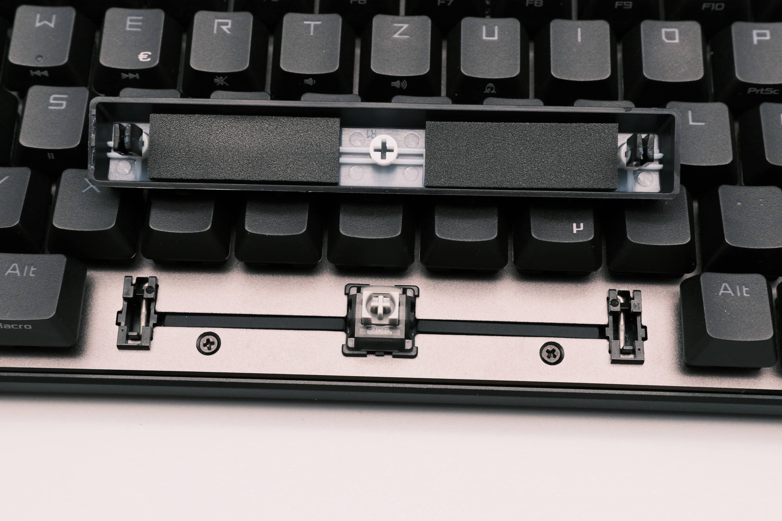 Der „Nachteil“ der besonderen magnetischen Schalter, eine Eigenentwicklung von ASUS ROG, besteht allerdings darin, dass sich diese nicht so einfach austauschen lassen. Zwar können auf Wunsch andere Switches verwendet werden, allerdings sind nur andere HFX-kompatible Schalter verwendbar. Normale mechanische Schalter können also nicht genutzt werden.