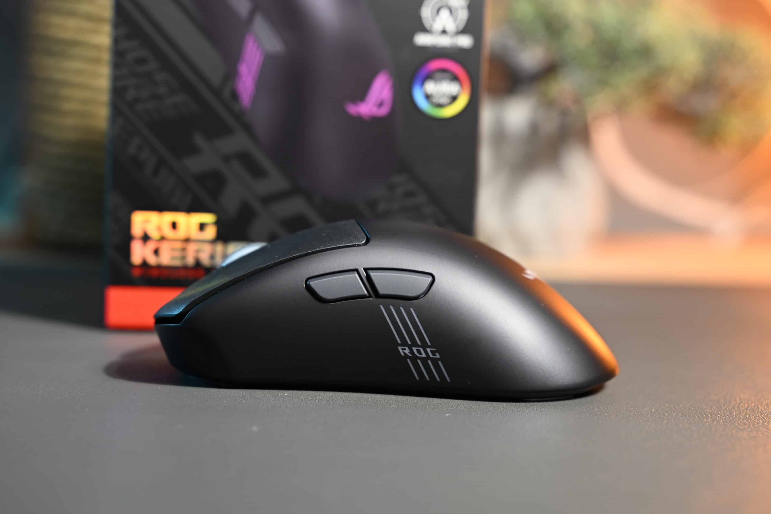 Unterschiede zeigen sich aber bei zwei Kernaspekten. Einerseits kommt die neue Keris II Origin mit einem etwas aufgefrischten Design daher. So gibt es nun auf der linken Mausseite ein ROG-Logo, das ebenfalls in der anpassbaren RGB-Beleuchtung erstrahlt. Zusammen mit Mausrad und Logo auf dem Mausrücken ergeben sich somit drei Zonen.
