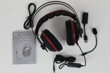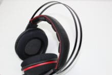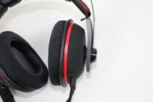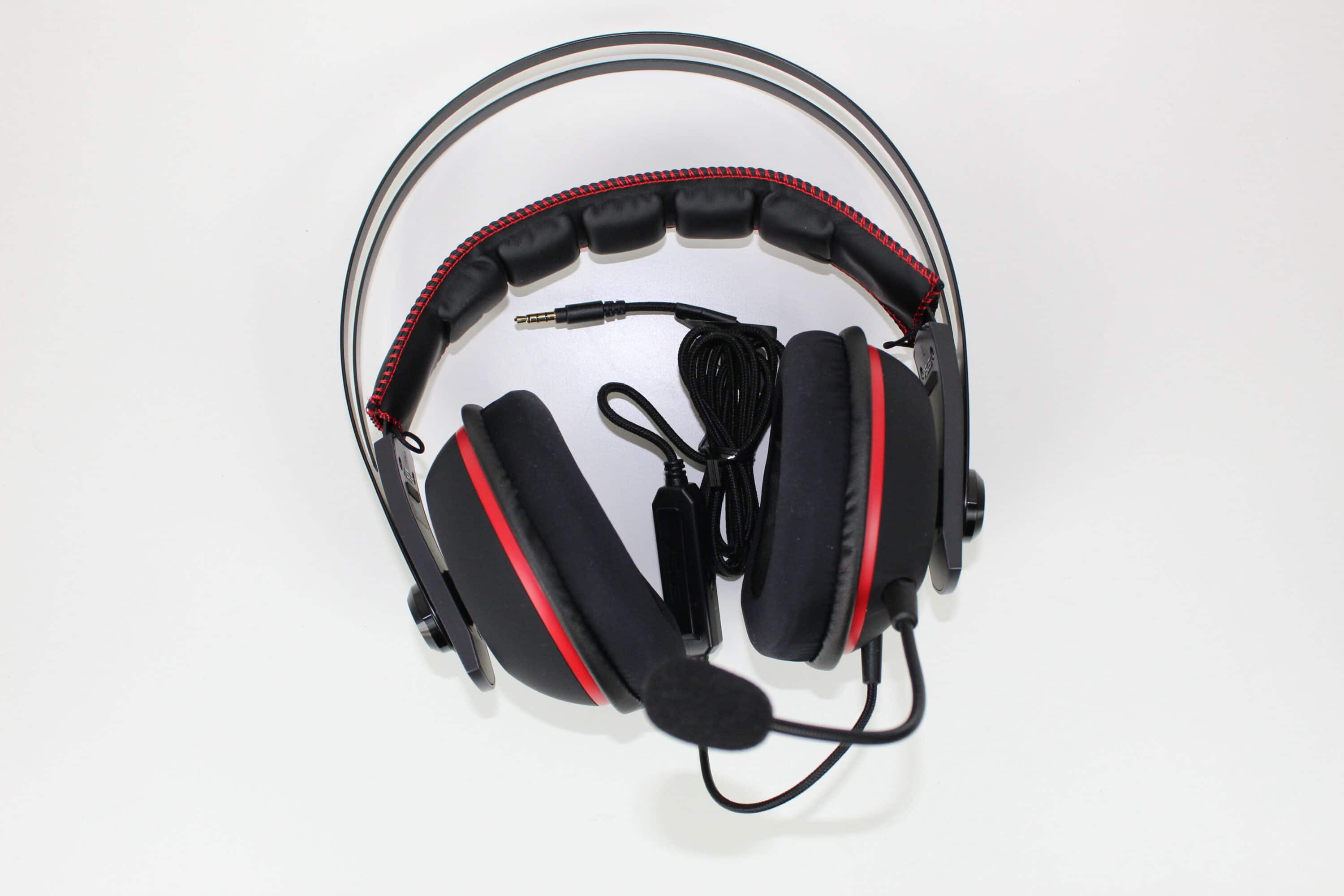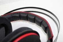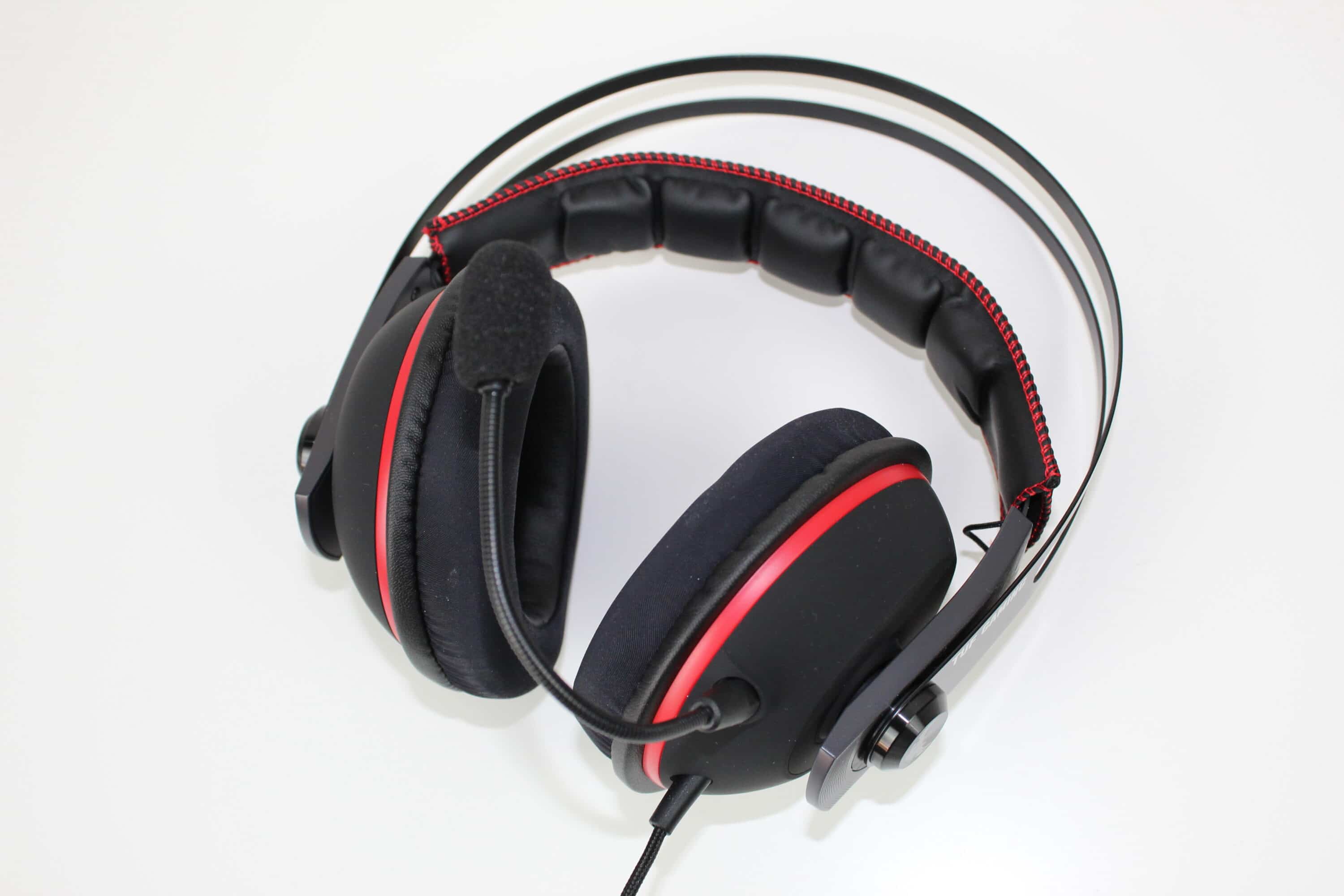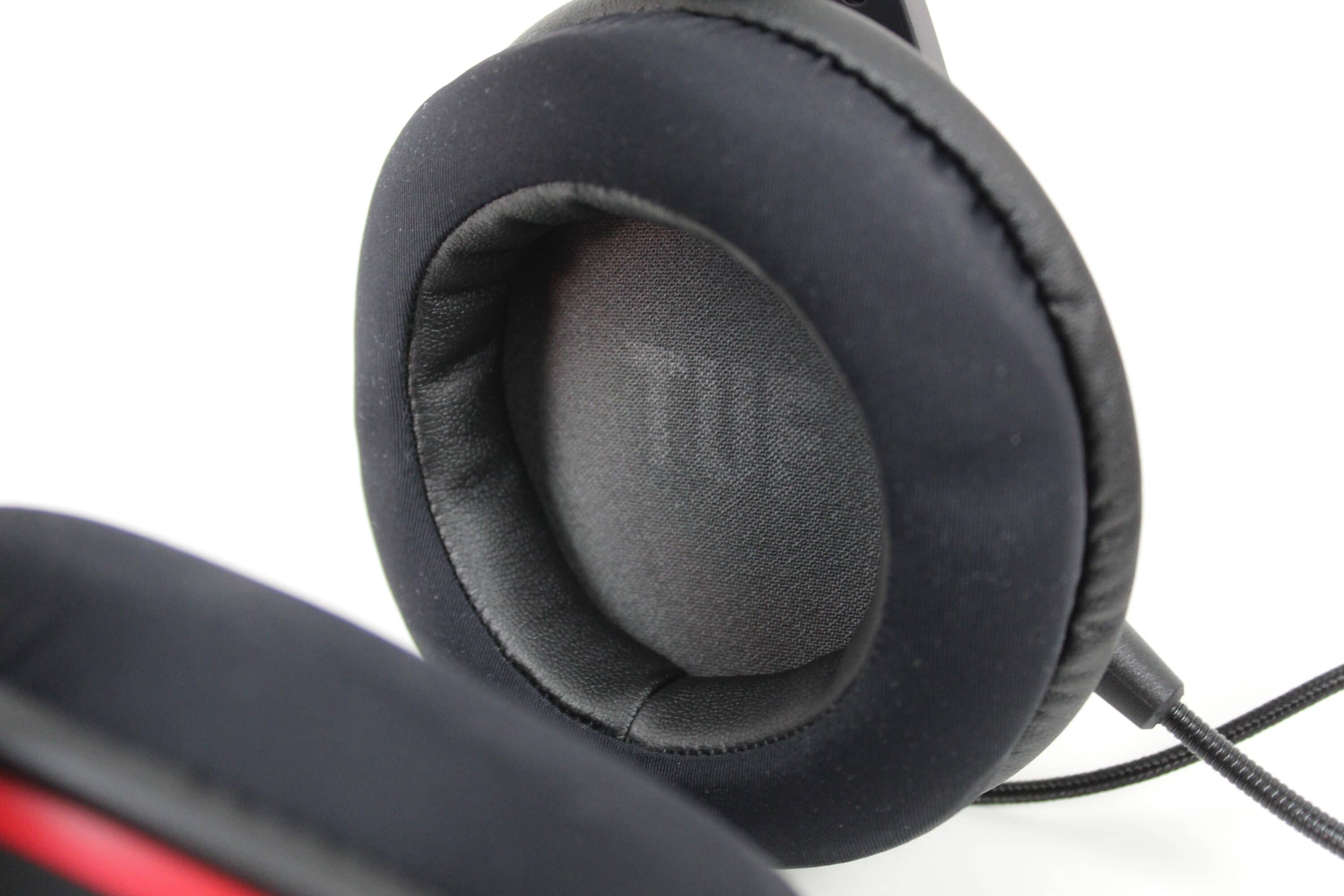 Unsere Version ist primär in Schwarz gehalten und mit einigen roten Akzenten versehen. Die Naht des Kopfbügels und die Ohrmuscheln enthalten rote Elemente, die das gesamte Headset optisch aufwerten.