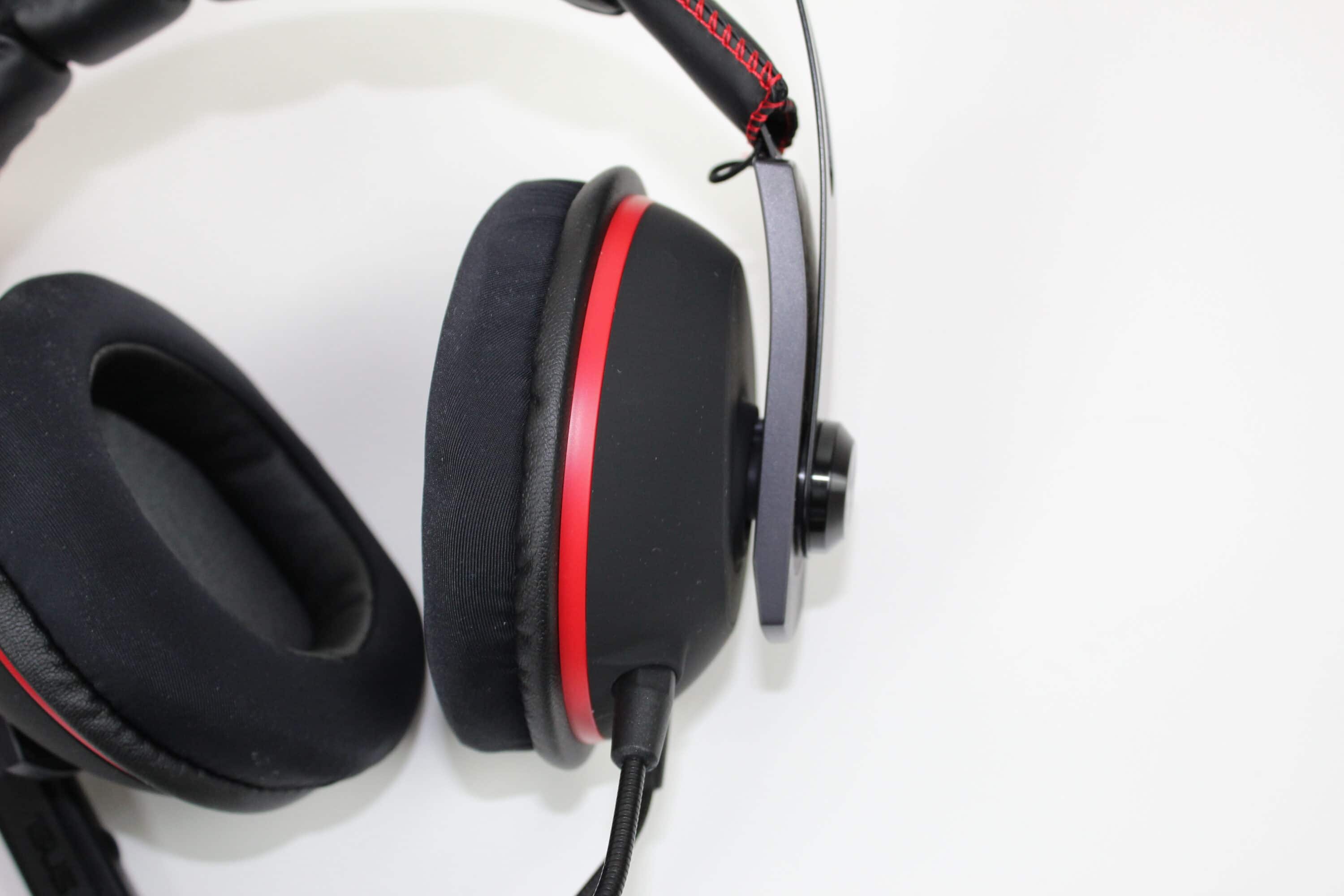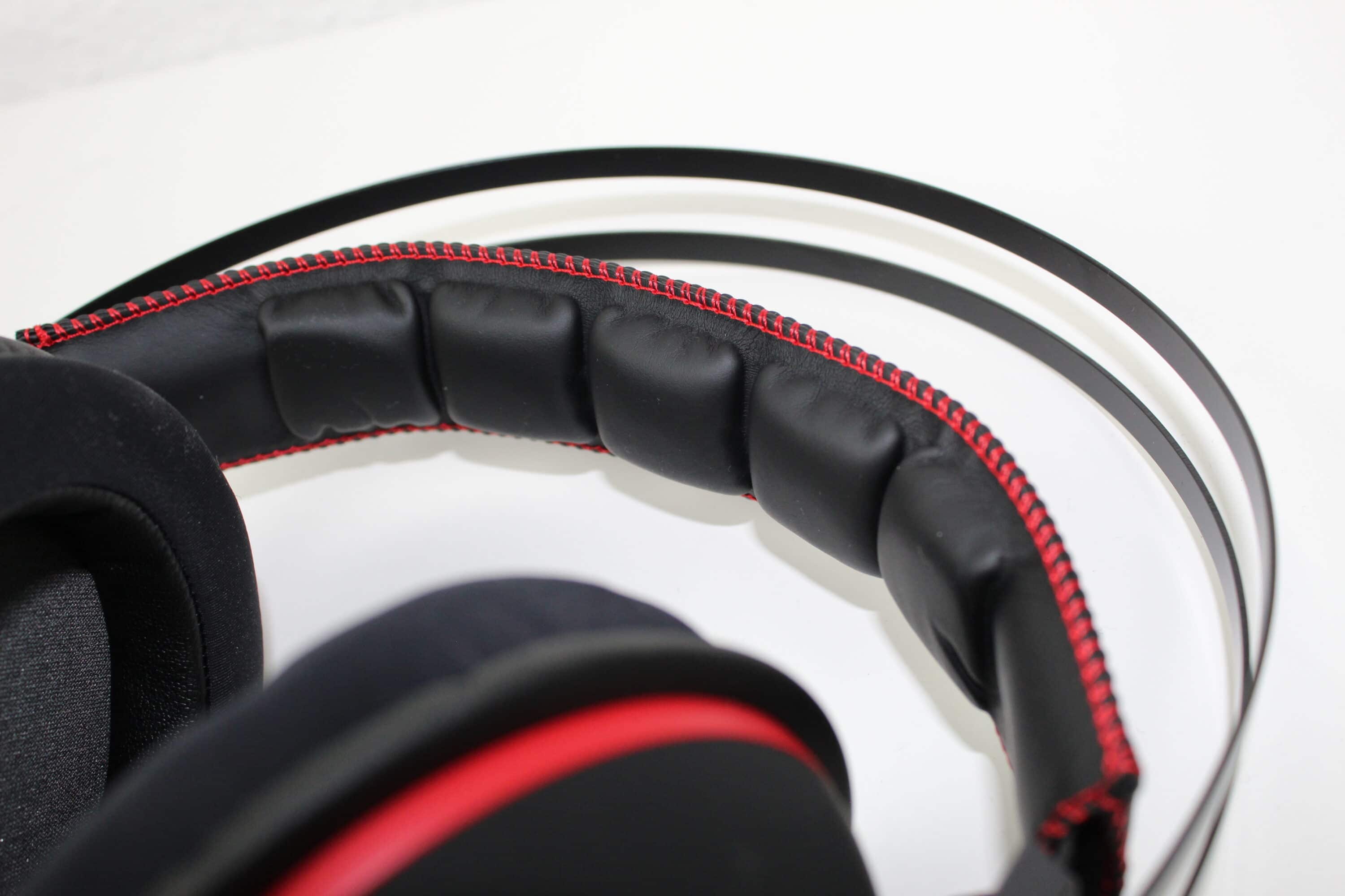 Das Band, sowie die Ohrpolster sind sehr weich – auch längere Gamingsessions sind ohne Probleme möglich. Durch den Stoffbezug der Polster werden diese auch nicht besonders warm – auch nach einigen Stunden bleibt es gemütlich. Das benötigte Kabel wird durch das Kopfband geführt – dies ist zwar sichtbar, wird beim Tragen des Headsets jedoch nicht bemerkt.