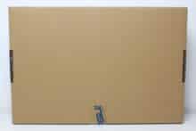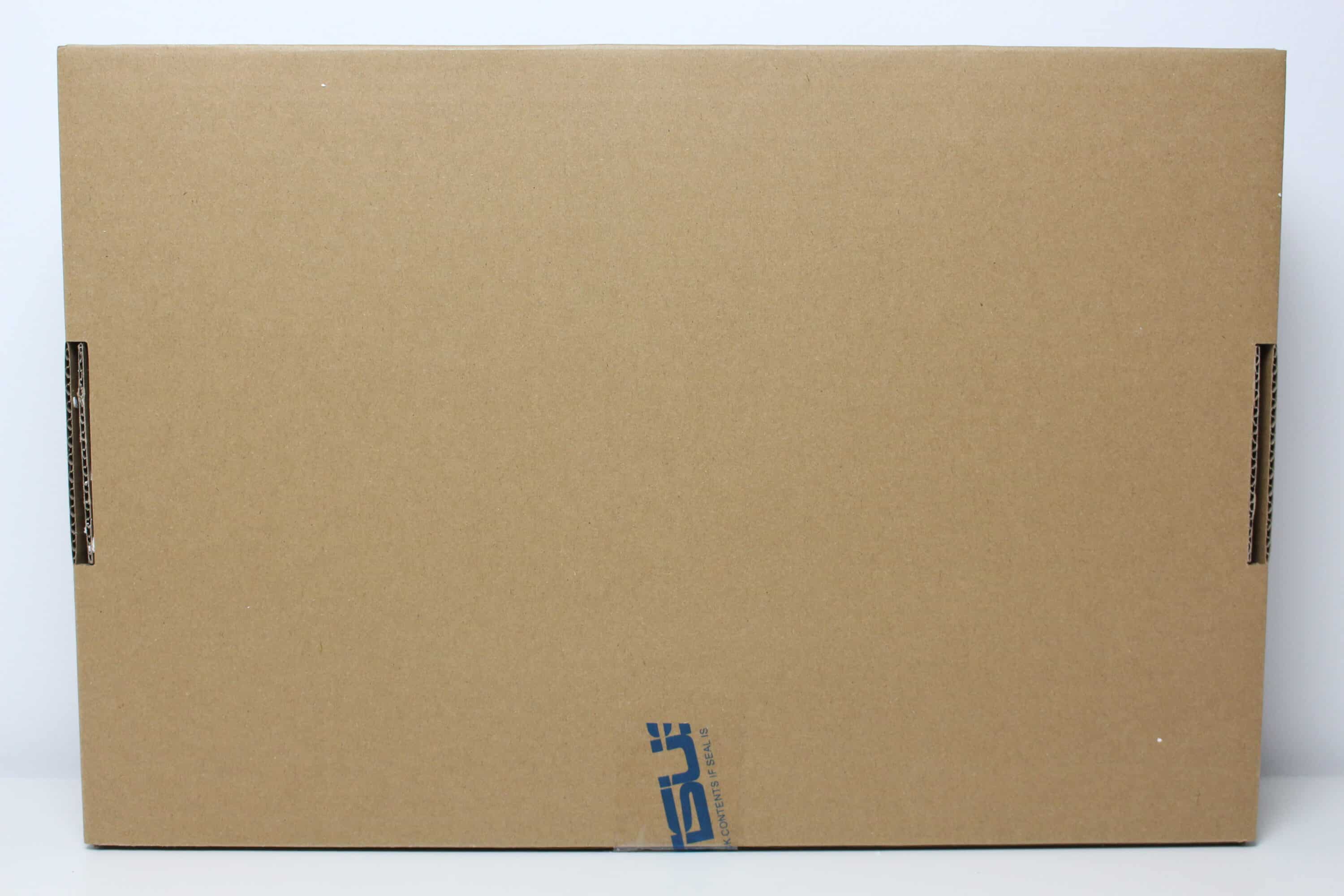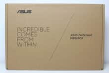 ASUS verpackt den ZenScreen MB169CK in einem äußerst unauffälligen Karton aus brauner Pappe. Auf die Vorderseite druckt der Hersteller einen Slogan sowie die Typenbezeichnung des portablen Monitors. An der Rückseite konnten wir keine zusätzlichen Angaben erkennen. Dafür klebt ASUS seitlich zwei Aufkleber auf den Karton, die zumindest grobe Informationen über den Monitor im Inneren preisgeben.