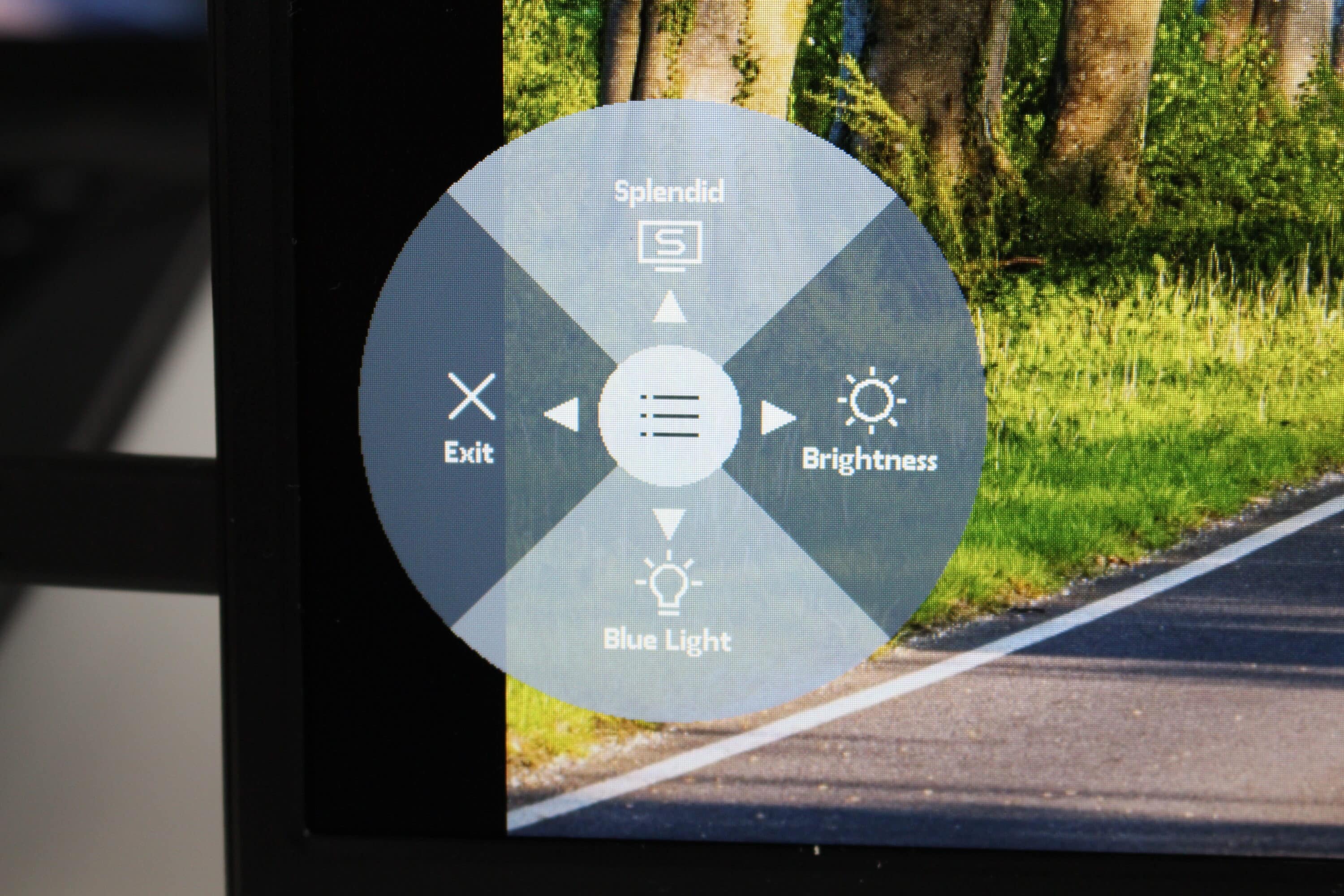 Die Bedienung des ASUS ZenScreen MB169CK erfolgt über einen mechanischen Knopf, der unten links am Display eingebaut wurde. Bewegt man den Knopf in eine beliebige Richtung, dann öffnet sich immer das On-Screen-Display. Dieses verfügt über drei Unterpunkte zur Konfiguration sowie eine Option zum Verlassen des Menüs. Neben der Helligkeit lassen sich auch der Blaulichtfilter sowie die generelle Farbdarstellung des Display anpassen. Weitere Optionen bzw. Konfigurationseinstellungen bietet das OSD des ZenScreen MB169CK nicht.