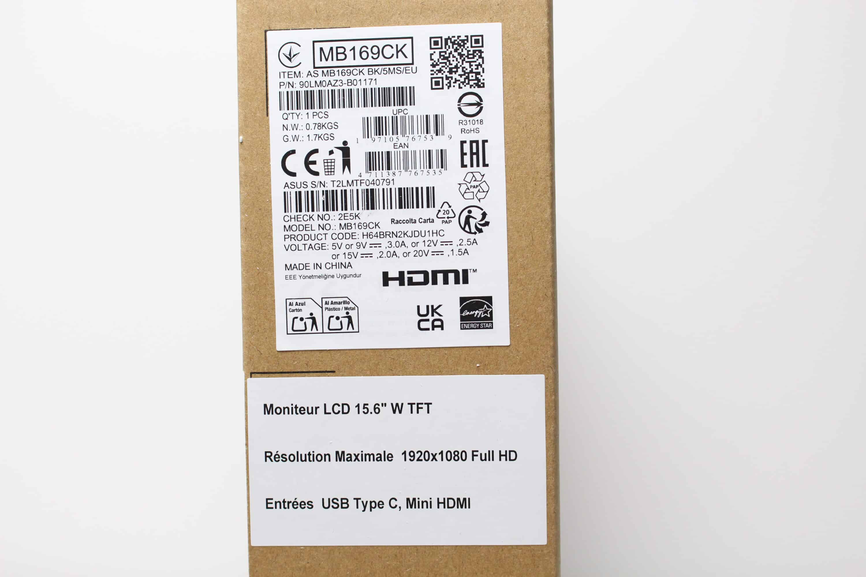 ASUS ZenScreen MB169CK Test: Verpackung und Lieferumfang