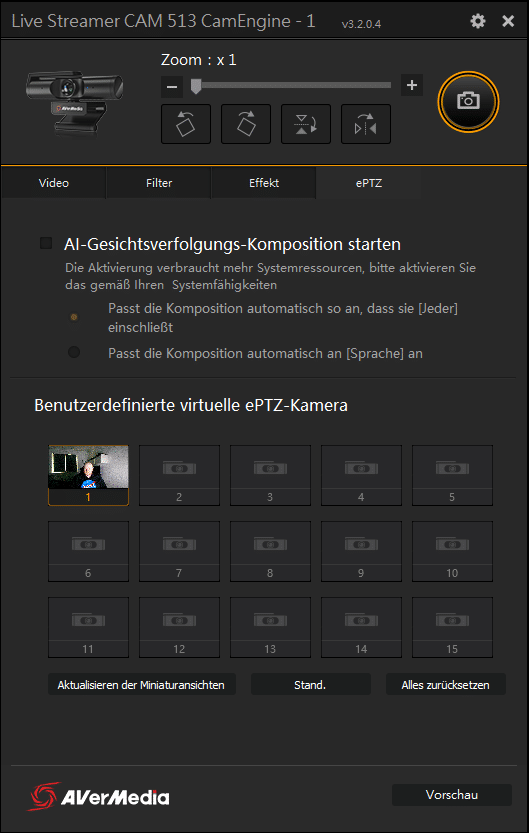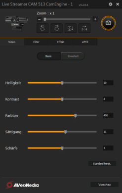 Über das Tool CamEngine von AVerMedia bietet die PW513 zahlreiche Einstellungsmöglichkeiten.