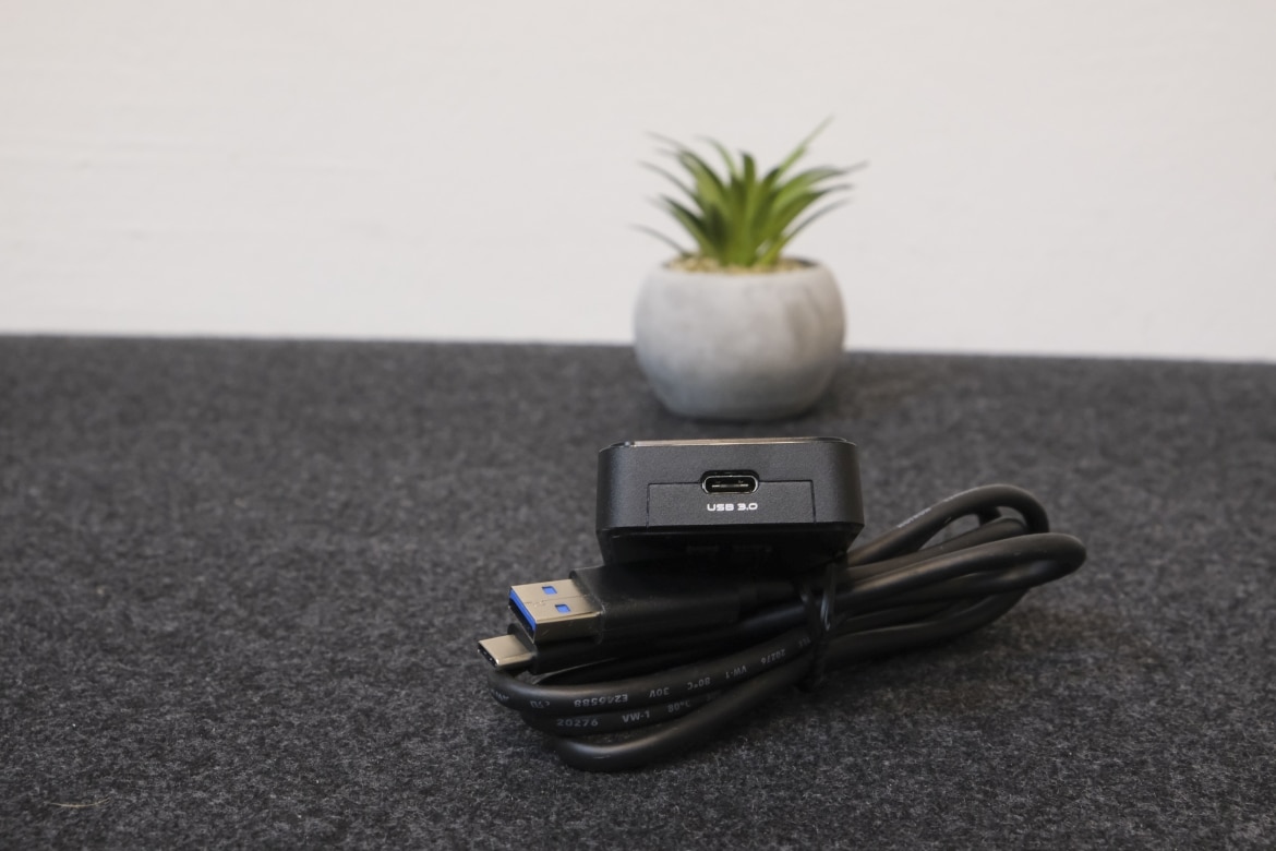 Über das Design gibt es dann auch nicht allzu viel zu sagen: Eine kleine, mattschwarze Box mit einem USB-C-Anschluss auf der einen und einem HDMI-Eingang auf der anderen Seite. Oben findet sich in der Mitte eine LED-Leuchte, die über den Betriebsstatus informiert – mehr gibt es nicht zu sehen. Unschön: Der kleine Kasten zieht darüber hinaus Fingerbadrücke magisch an.