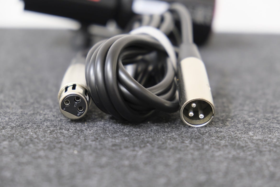 Im schwarz-roten Karton des AverMedia Live Streamer MIC 330 befindet sich das Mikrofon selbst in einer dicken Schaumstoff-Hülle eingebettet. Darüber positioniert der Hersteller das XLR Kabel zum Anschluss an einen Verstärker oder das hauseigene Streaming-Deck. Es kommt auf eine Länge von rund drei Metern und wirkt hochwertig verarbeitet.