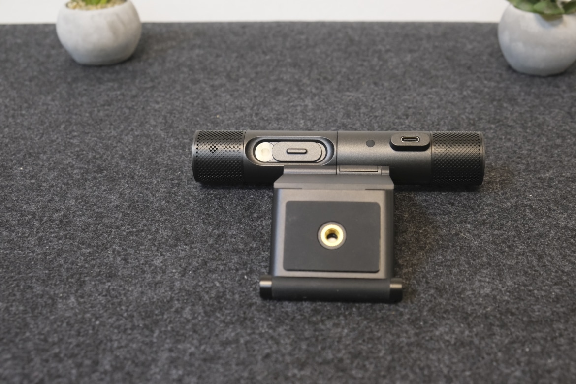 Die Front der Webcam setzt sich links und rechts aus zweigeteilten Systemen zusammen: An der Außenseite finden wir jeweils das verbaute Mikrofon, während an der Innenseite die Linse der Webcams Platz nimmt. Dank Hardware-Shutter lassen sich zudem beide Kameras mit einer Blende abdecken, um so die Privatsphäre zu schützen.