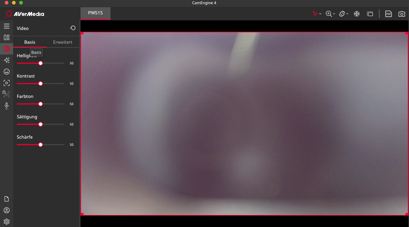 Im Hauptmenü besteht die Möglichkeit, in einem Menü auf der linken Seite verschiedene Bildeinstellungen vorzunehmen. So können wir beispielsweise Helligkeit und Schärfe anpassen, und die Belichtung manuell festlegen.