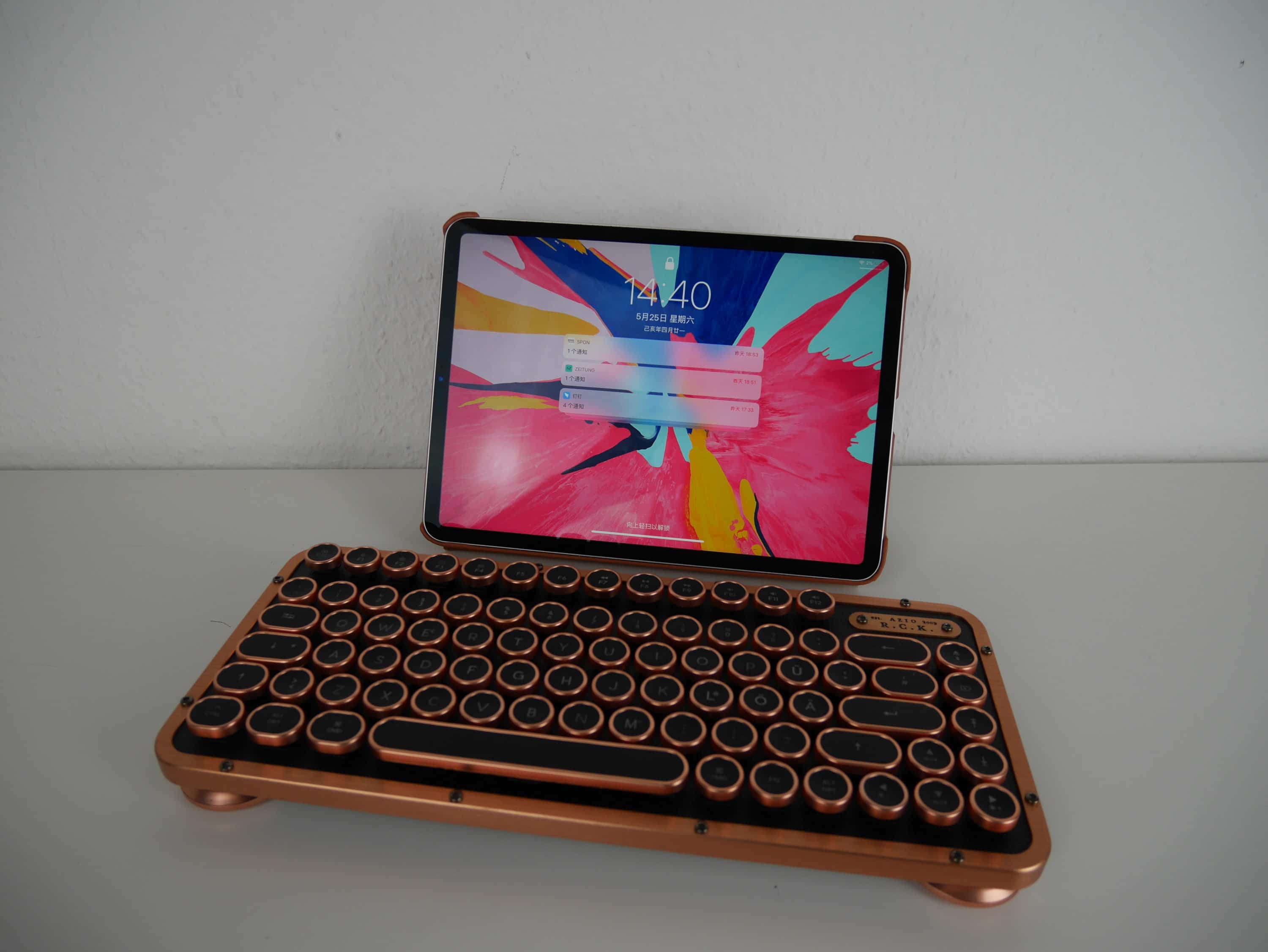 Die Ausstattungsmerkmal der Tastatur, die Bluetooth und einen 5.000 mAh großer Akku besitzt, erwecken den Eindruck, dass die R.C.K. für den mobilen Gebrauch konzipiert wurde. Da die Tastatur mit 1.600 Gramm Gewicht allerdings rund 400 Gramm schwerer ist als ein DELL XPS 13, ist die R.C.K. meiner Meinung nach für Nutzer, die regelmäßig mit ihrer Hardware unterwegs sind, keine Alternative zu klassischen iPad-Tastaturen. Auch bei Nutzung der einfarbigen weißen Hintergrundbeleuchtung hielt eine Akkuladung in unserem Test für mehrere Wochen intensiver Nutzung aus.