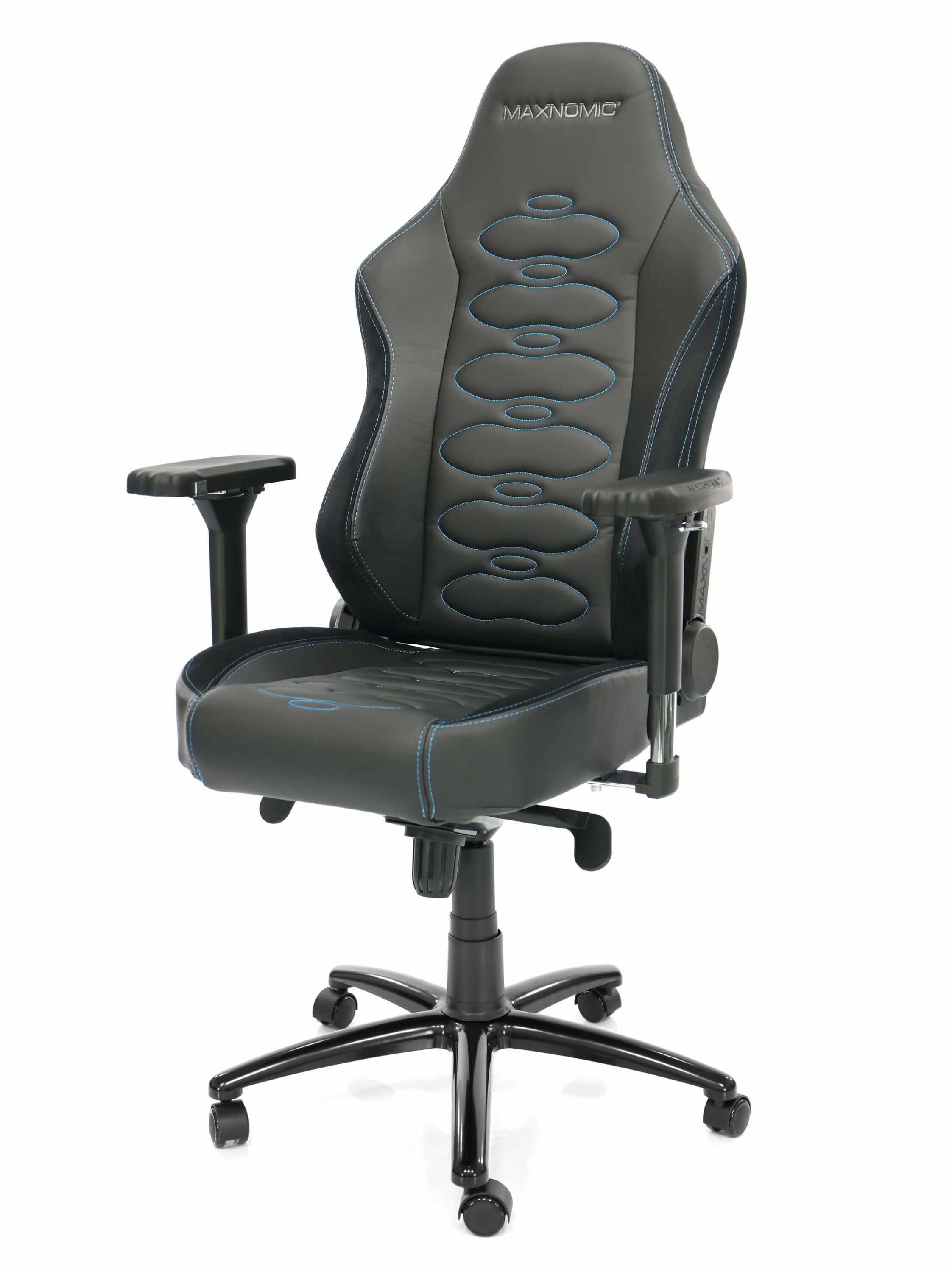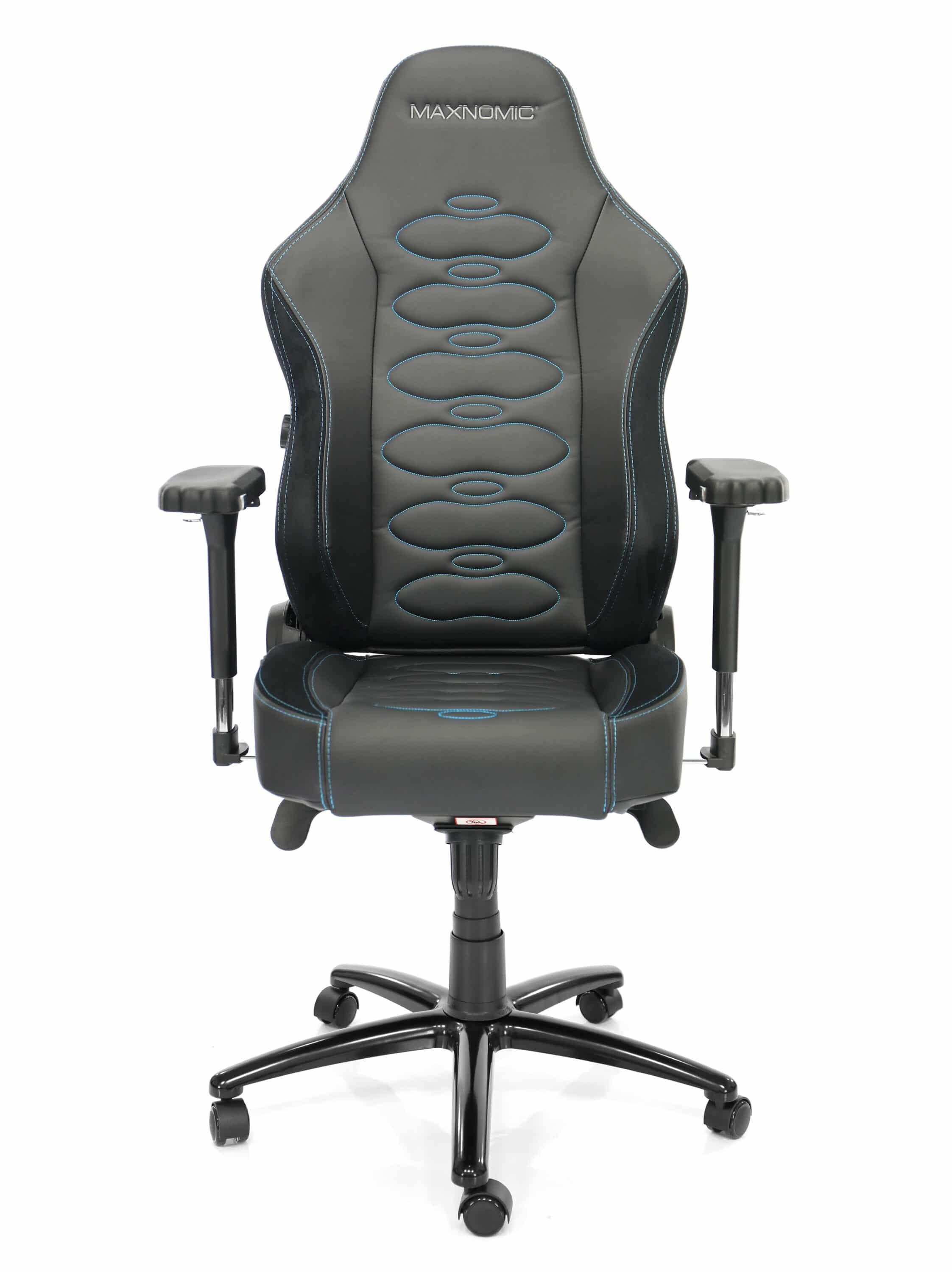 Bei Maxnomic kann man nicht alle Stühle über einen Kamm scheren; zu vielfältig ist die Auswahl. Der Hersteller aus Deutschland unterscheidet dabei auch zwischen Stühlen für Pro-Gamer, Hobby-Gamer, Office-Tätigkeiten oder große Menschen. Je nach Sparte sind unterschiedliche Extras eingebaut. In den meisten Fällen sind 4D-Armlehnen Standardausrüstung. Ebenso ist in jeder Rückenlehne ein Stahlrahmen verbaut, der mit Elastikbändern verbunden ist. Diese sorgen für den nötigen Rückhalt. Sind diese Bänder aber erst einmal „ausgeleiert“, müssten sie ausgetauscht werden. Anderenfalls tun sie nicht mehr ihren Dienst, was nicht optimal für den Rücken ist.